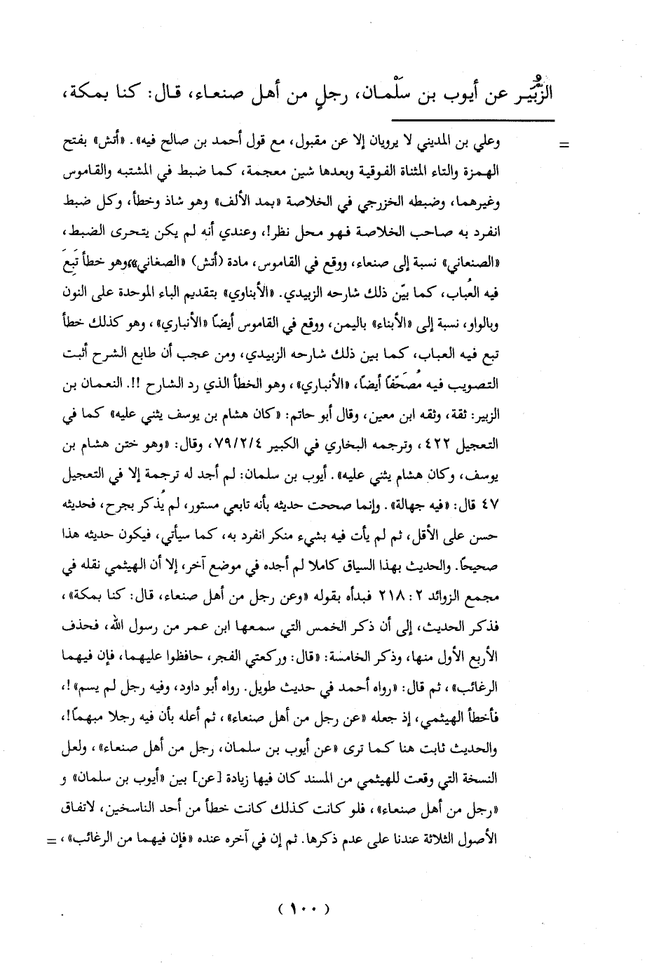وعلي بن المديني لا يرويان إلا عن مقبول، مع قول أحمد بن صالح فيه". "أتش" بفتح الهمزة والتاء المثناة الفوقية وبعدها شين معجمة، كما ضبط في المشتبه والقاموس وغيرهما، وضبطه الخزرجي في الخلاصة "بمد الألف" وهو شاذ وخطأ، وكل ضبط انفرد به صاحب الخلاصة فهو محل نظر!، وعندي أنه لم يكن يتحرى الضبط، "الصنعاني" نسبة إلى صنعاء، ووقع في القاموس، مادة (أتش) "الصغاني"، وهو خطأ تَبِعَ فيه العُباب، كما بيّن ذلك شارحه الزبيدي. "الأبناوي" بتقديم الباء الموحدة على النون