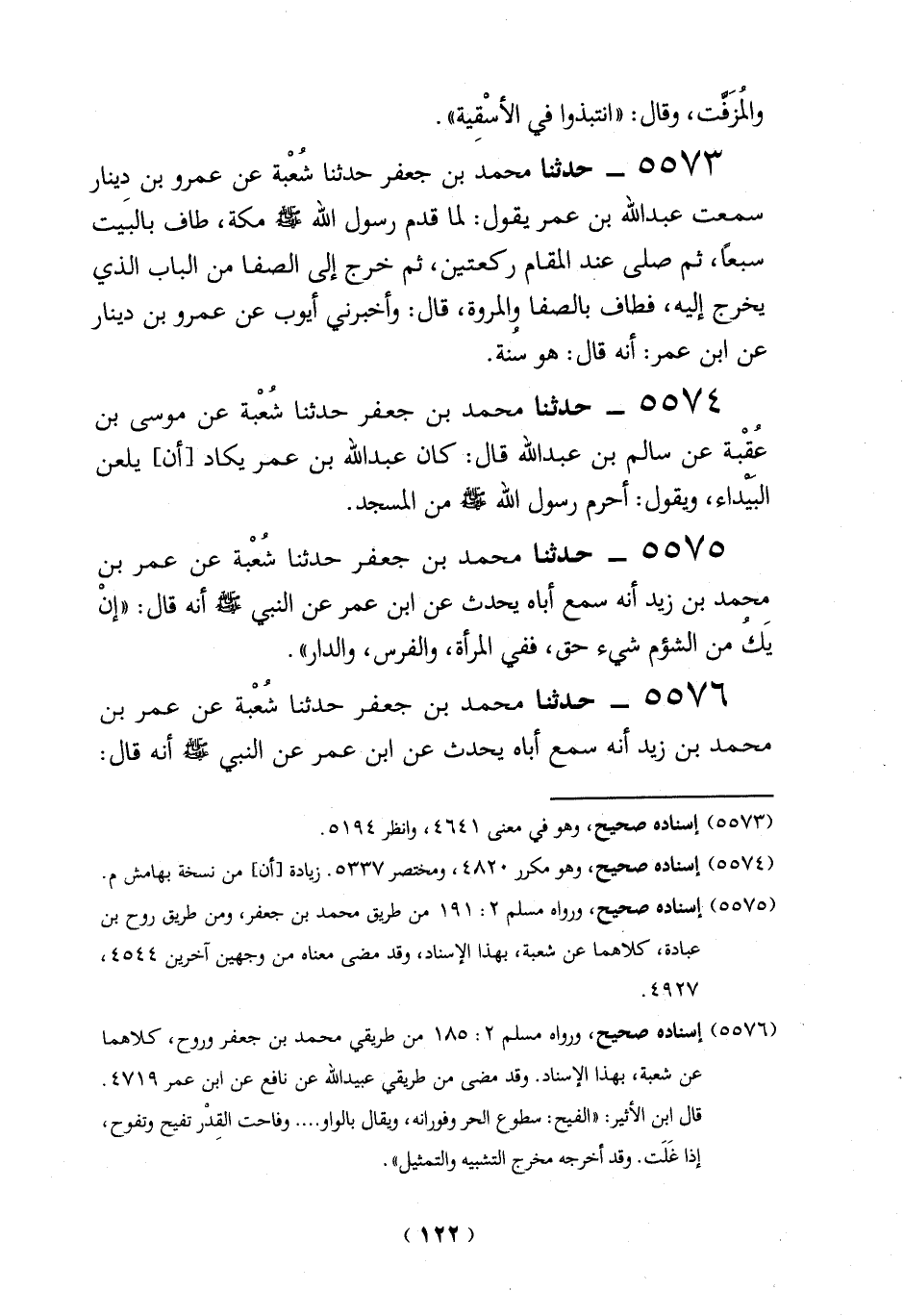5576 - حدثنا محمد بن جعفرحدثنا شُعْبة عن عمر بن محمد بن زيد أنه سمع أباه يحدث عن ابن عمر عن النبي -صلي الله عليه وسلم - أنه قال:
