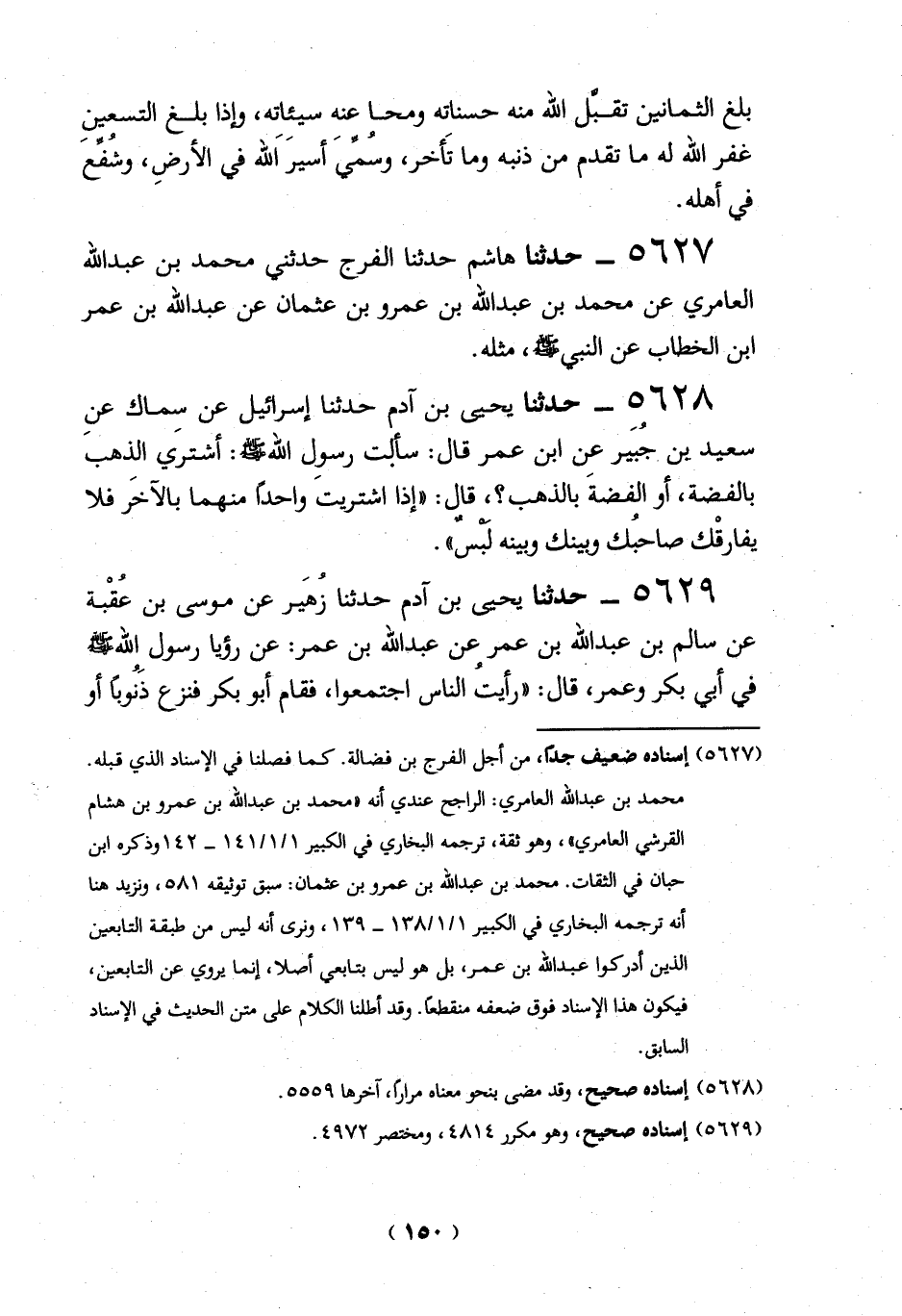 5627 - حدثنا هاشم حدثنا الفرج حدثني محمد بن عبد الله العامري عن محمد بن عبد الله بن عمرو بن عثمان عن عبد الله بن عمر ابن الخطاب عن النبي -صلي الله عليه وسلم -,مثله.