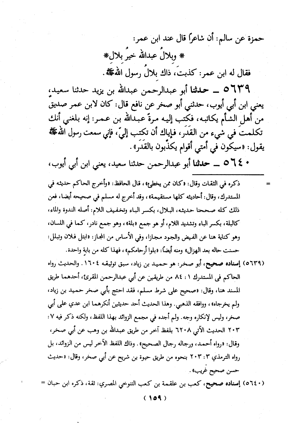 5639 - حدثنا أبو عبد الرحمن عبد الله بن يزيد حدثنا سعيد, يعني ابن أبي أيوب، حدثني أبو صخر عن نافع قال: كان لابن عمر صديق من أهل الشأم يكاتبه، فكتب إليه مرةً عبد الله بن عمر: إنه بلغني أنك تكلمتَ في شيء من القَدَر، فإياك أن تكتب إليّ، فإني سمعت رسول الله -صلي الله عليه وسلم -