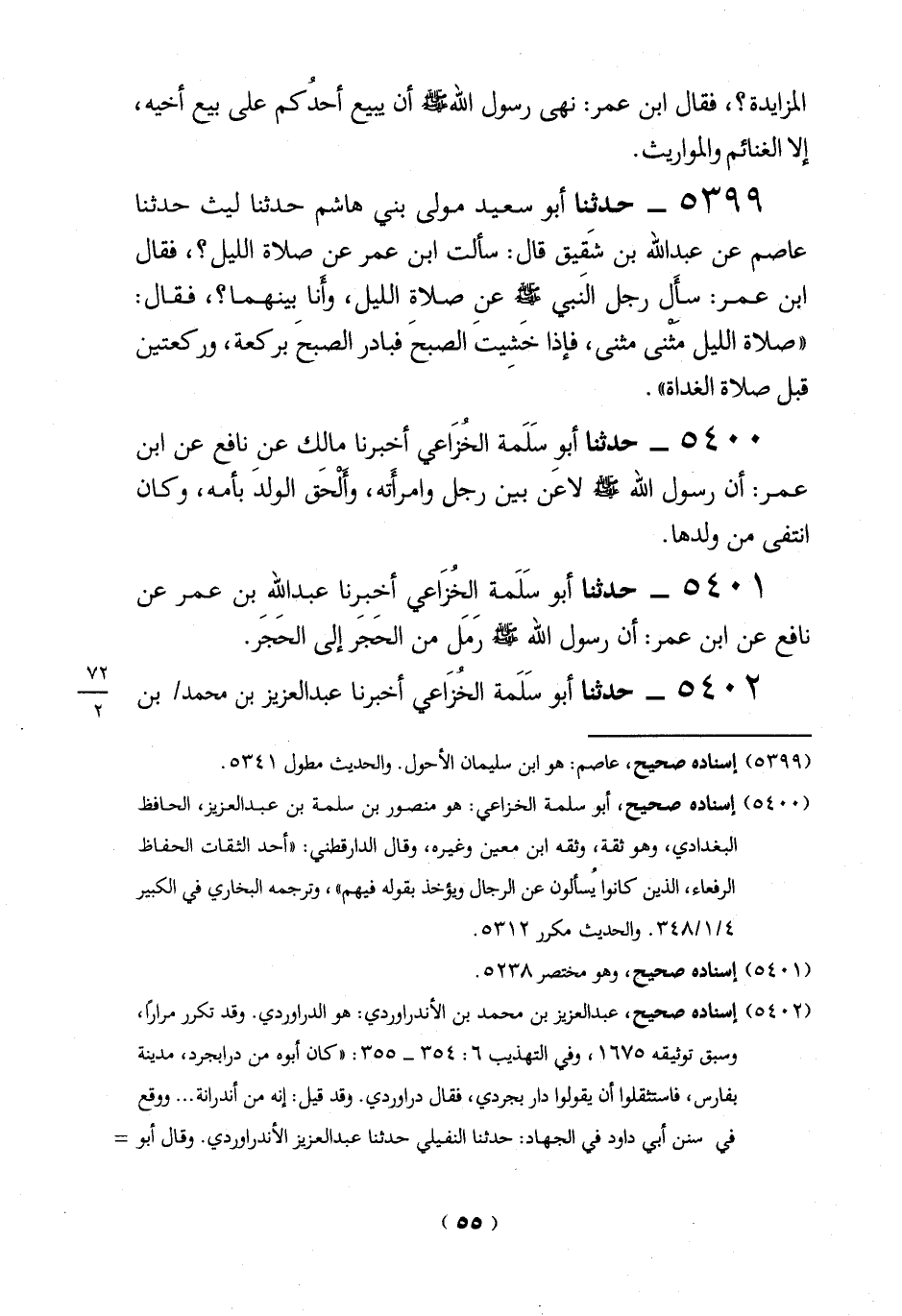 5402 - حدثنا أبو سَلَمة الخزَاعي أخبرنا عبد العزيز بن محمد بن