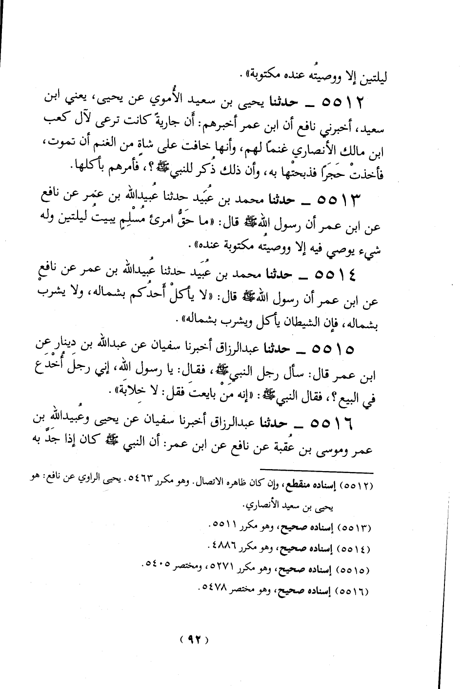 (5512) إسناده منقطع، وإن كان ظاهره الاتصال. وهو مكرر 5463. يحيى الراوي عن نافع: هو