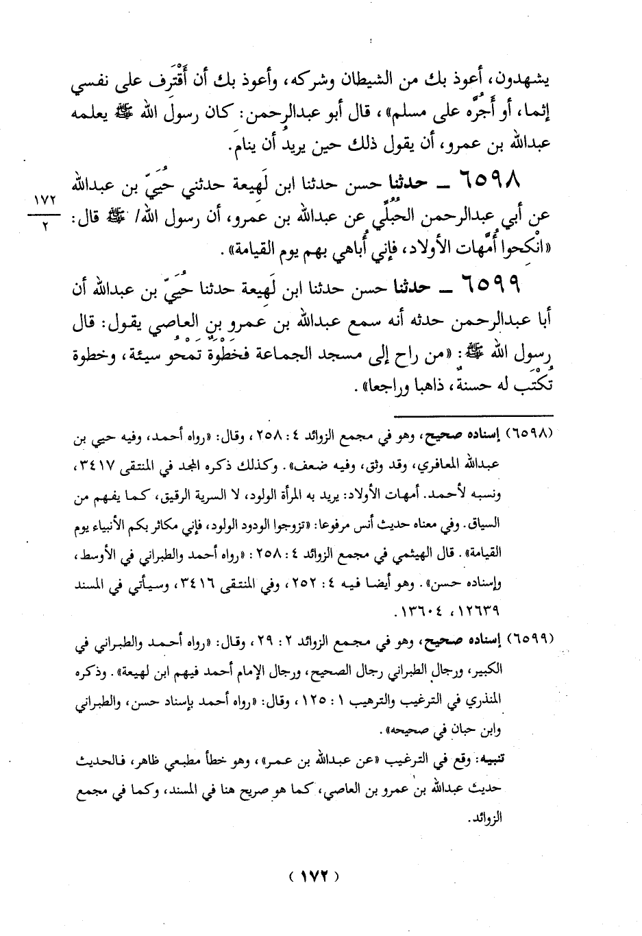 6598 - حدثنا حسن حدثنا ابن لَهِيعة حدثني حيي بن عبد الله عن أبي عبد الرحمن الحُبُلِّي عن عبد الله بن عمرو، أن رسول الله -صلي الله عليه وسلم -قال: "انْكحوا أُمَّهات الأولاد، فإني أباهي بهم يوم القيامة".