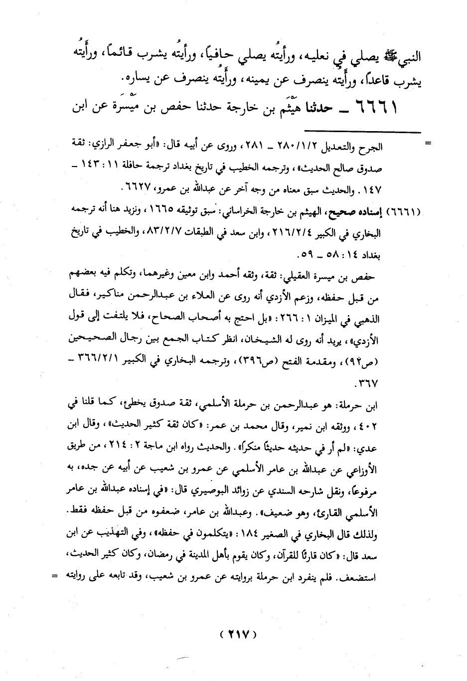 (6661) إسناده صحيح، الهيثم بن خارجة الخراساني: سبق توثيقه 1665، ونزيد هنا أنه ترجمه البخاري في الكبير 4/ 2/216، وابن سعد في الطبقات 7/ 2/ 83، والخطيب في تاريخ بغداد 14: 58 - 59.