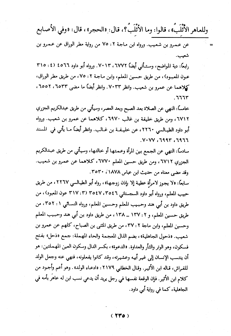 سادساً: النهي عن الجمع بين المرأة وعمتها أو خالتها، وسيأتي من طريق عبد الكريم الجزري 6712، ومن طريق حسين المعلم 6770، كلاهما عن عمرو بن شعيب.