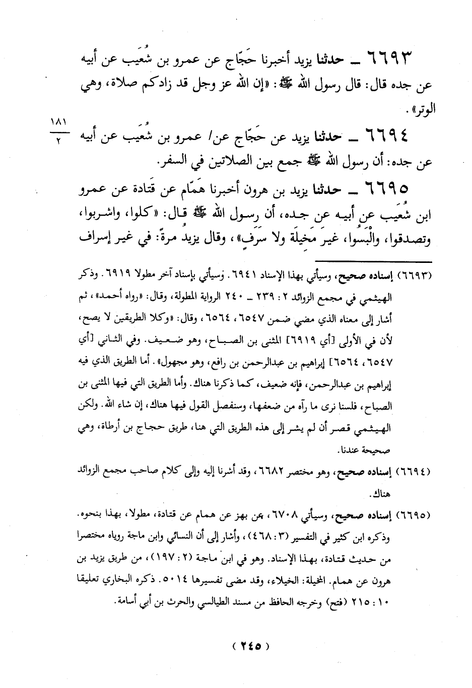 (6694) إسناده صحيح، وهو مختصر 6682، وقد أشرنا إليه وإلى كلام صاحب مجمع الزوائد هناك.