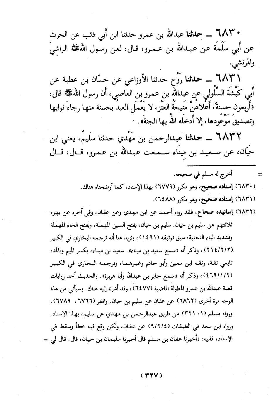 6832 - حدثنا عبد الرحمن بن مَهْدي حدثنا سَليمٌ، يعني ابن حيان، عن سعيد بن مِينَاء سمعت عبد الله بن عمرو، قال: قال