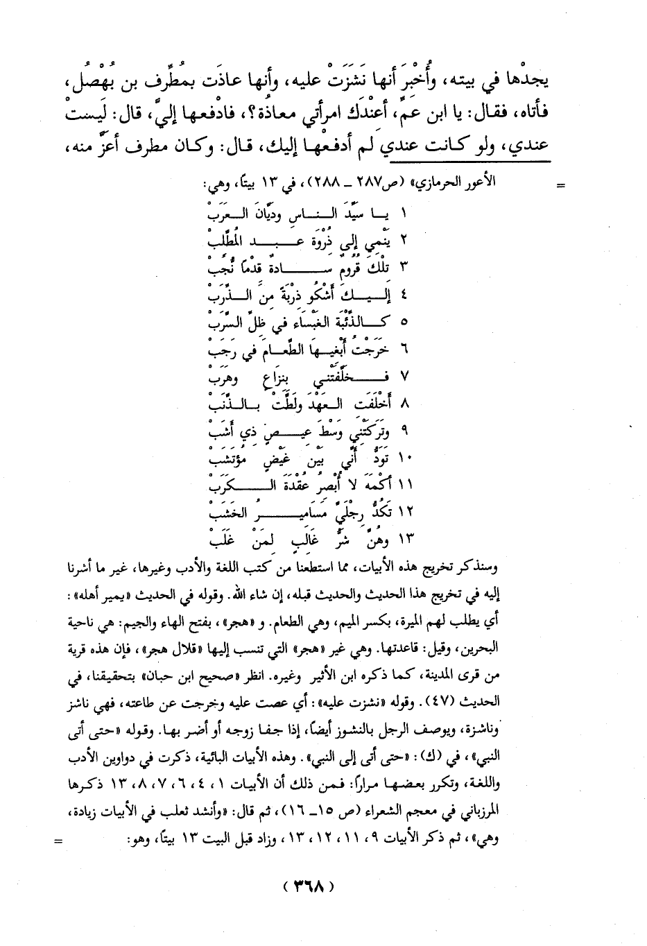 = الأعور الحرمازي" (ص 287 - 288)، في 13 بيتاً، وهي: