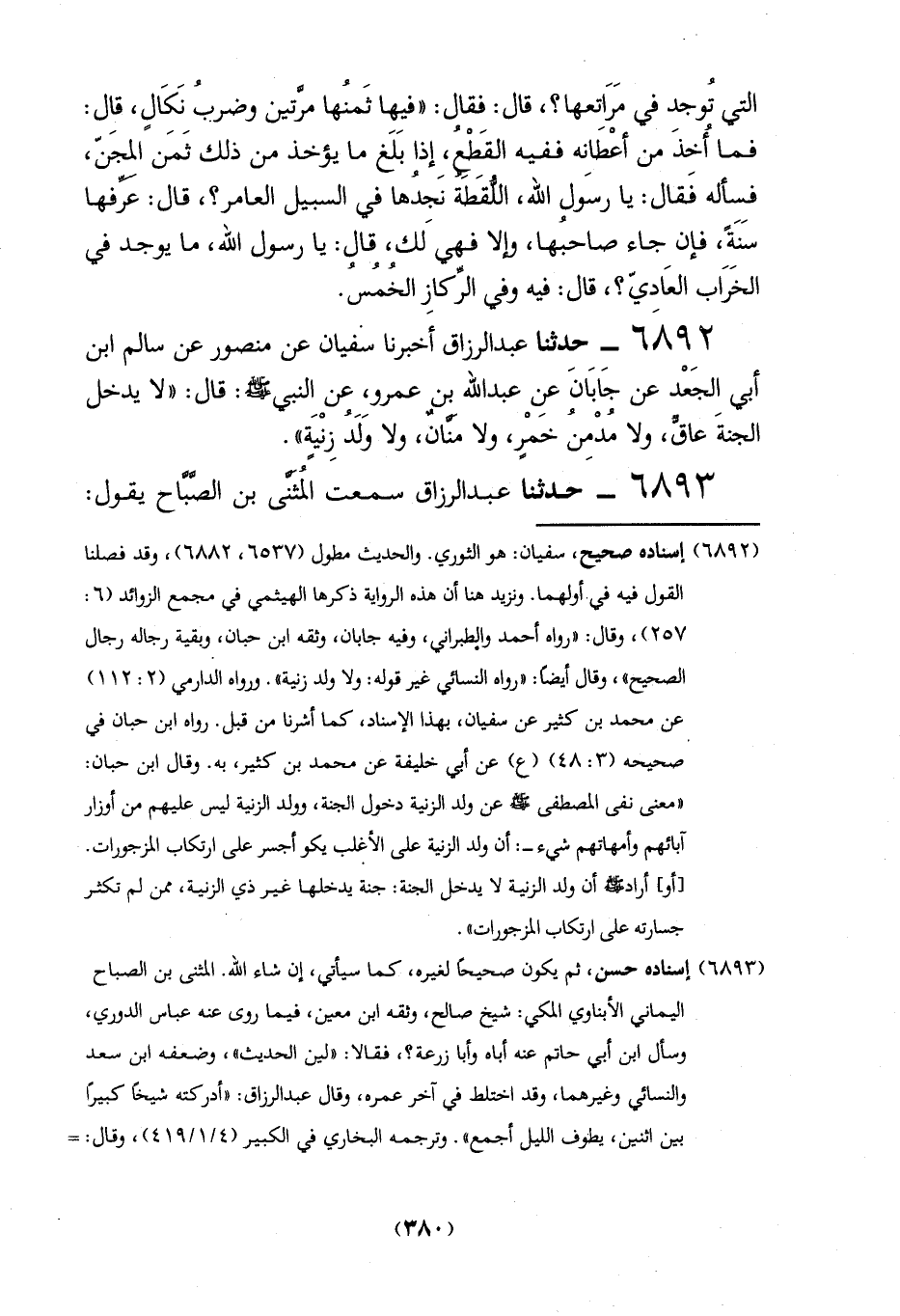 6893 - حدثنا عبد الرزاق سمعت المُثَنَّى بن الصَّبَّاح يقول: