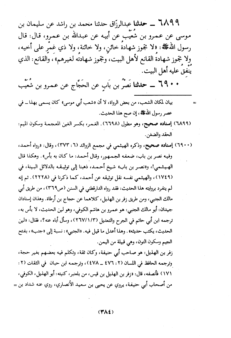 6900 - حدثنا نَصْرُ بن بَابٍ عن الحَجَّاج عن عمرو بن شُعَيْب