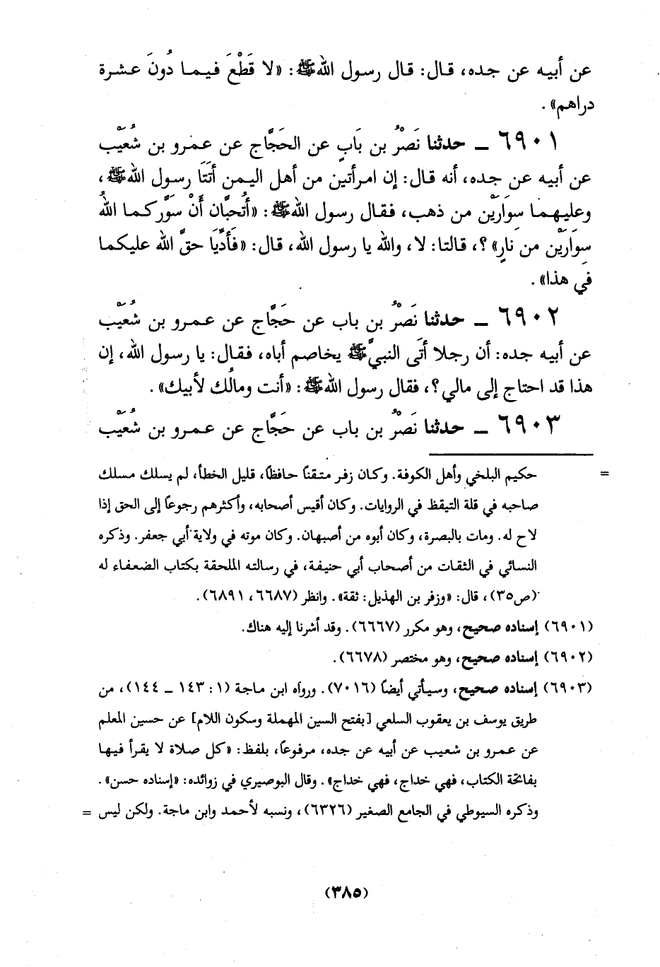 6903 - حدثنا نَصْرُ بن باب عن حَجَّاج عن عمرو بن شُعَيْب