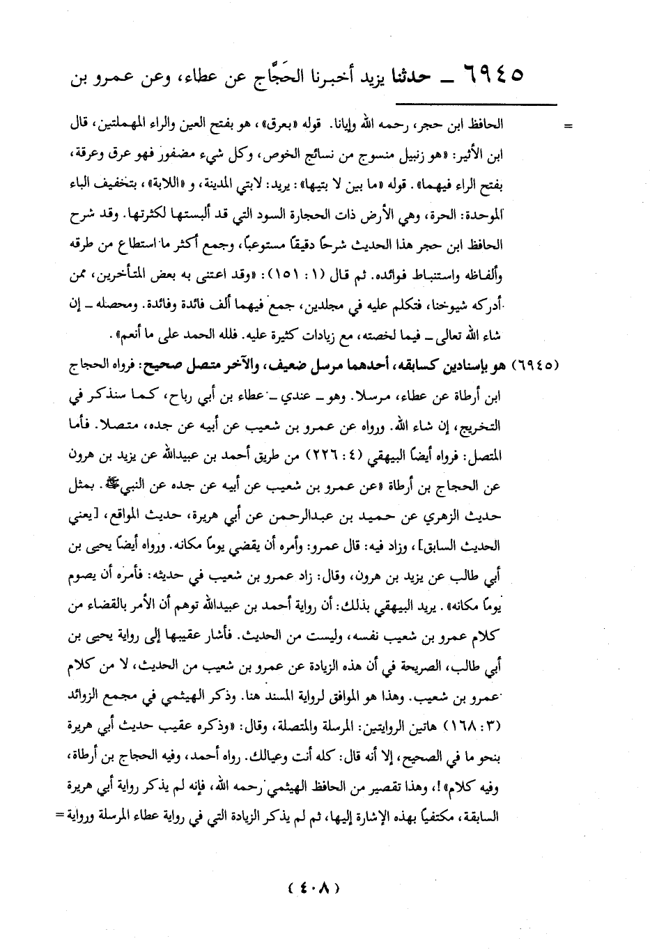 6945 - حدثنا يزيد أخبرنا الحَجَّاج عن عطاء، وعن عمرو بن