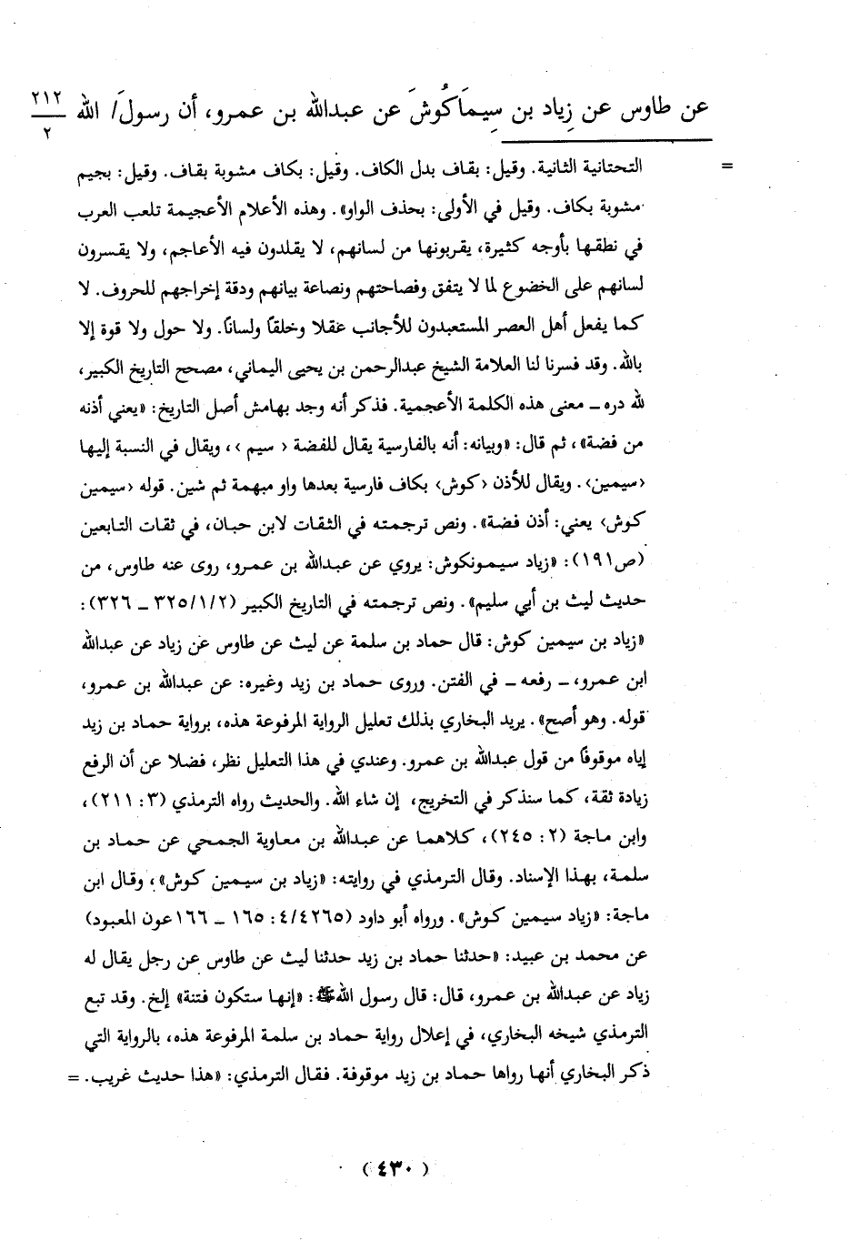 عن طاوس عن زِياد بن سِيمَاكُوشَ عن عبد الله بن عمرو، أن رسولَ الله