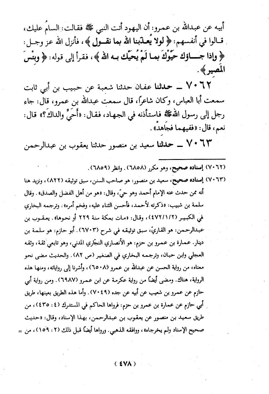 7063 - حدثنا سعيد بن منصور حدثنا يعقوب بن عبد الرحمن
