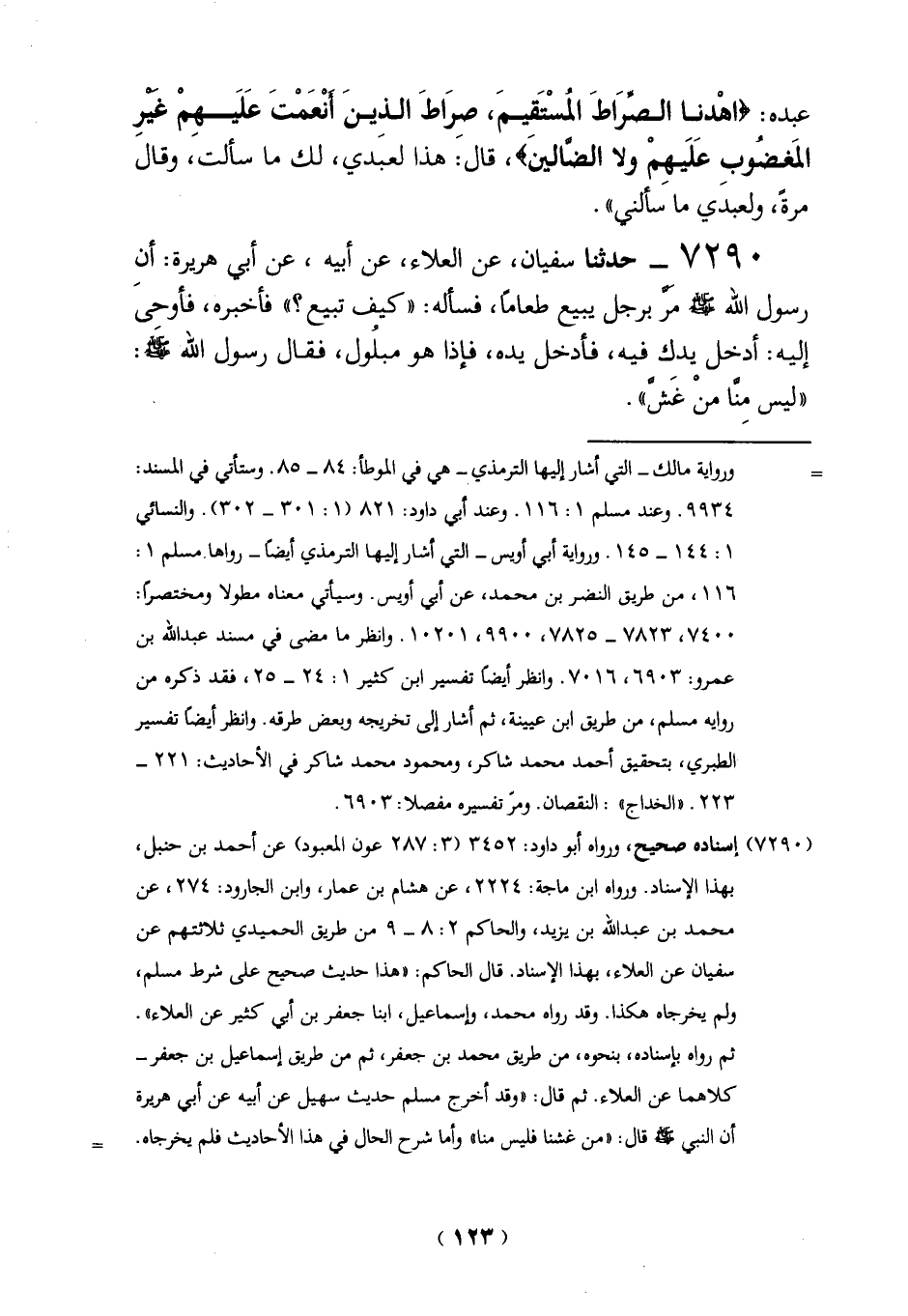 (7290) إسناده صحيح، ورواه أبو داود: 3452 (3: 287 عون المعبود) عن أحمد بن حنبل، بهذا الإِسناد. ورواه ابن ماجة: 2224، عن هشام بن عمار، وابن الجارود: 274، عن محمَّد بن عبد الله بن يزيد، والحاكم 2: 8 - 9 من طريق الحميدي ثلاثتهم عن سفيان عن العلاء، بهذا الإِسناد. قال الحاكم: "هذا حديث صحيح على شرط مسلم، ولم يخرجاه هكذا. وقد رواه محمَّد، وإسماعيل، ابنا جعفر بن أبي كثير عن العلاء".