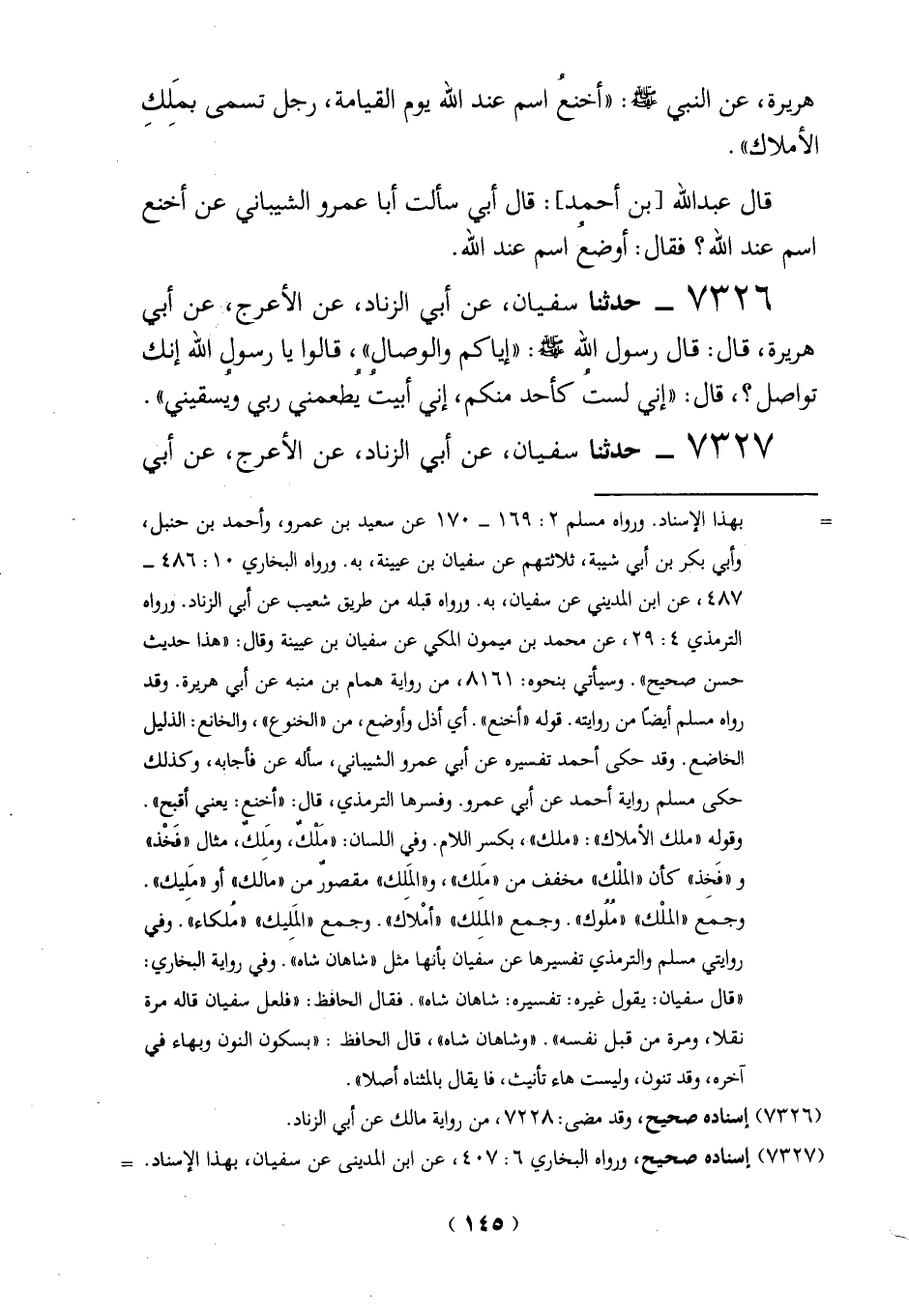 7327 - حدثنا سفيان، عن أبي الزناد، عن الأعرج، عن أبي