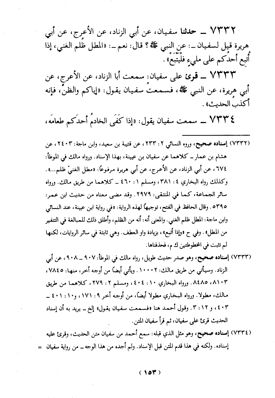 7333 - قرئ على سفيان: سمعت أبا الزناد، عن الأعرج، عن أبي هريرة، عن النبي -صلي الله عليه وسلم -، فسمعتُ سفيان يقول: "إياكم والظنَّ، فإنه أكذب الحديث".