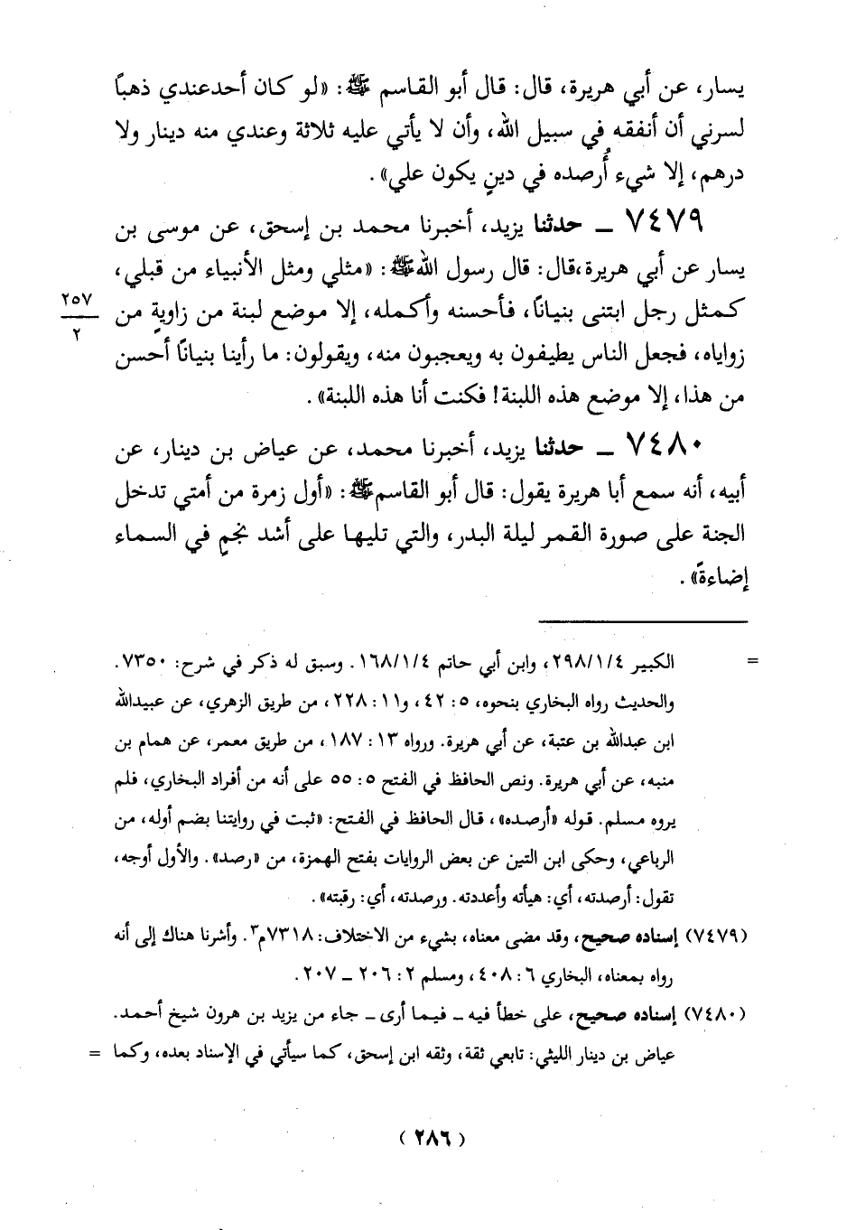 (7479) إسناده صحيح، وقد مضى معناه، بشيء من الاختلاف: 7318 م 3. وأشرنا هناك إلى أنه رواه بمعناه، البخاري 6: 408، ومسلم 2: 206 - 207.