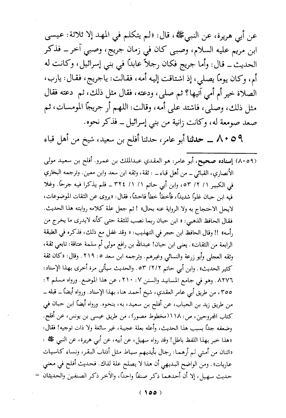 8059 - حدثنا أبو عامر، حدثنا أفلح بن سعيد، شيخ من أهل قباء