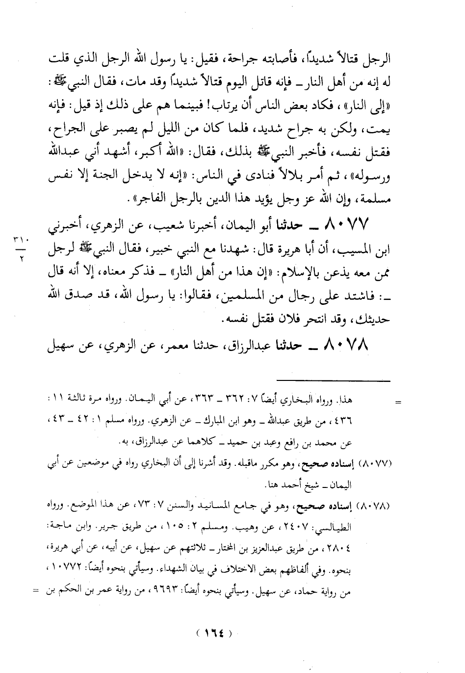 (8077) إسناده صحيح، وهو مكرر ما قبله. وقد أشرنا إلى أن البخاري رواه في موضعين عن أبي اليمان - شيخ أحمد هنا.