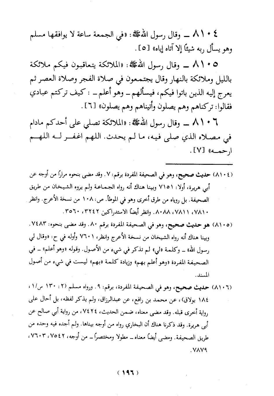 (8105) هو حديث صحيح، وهو في الصحيفة المفردة برقم 80. وقد مضى بنحوه:7483.