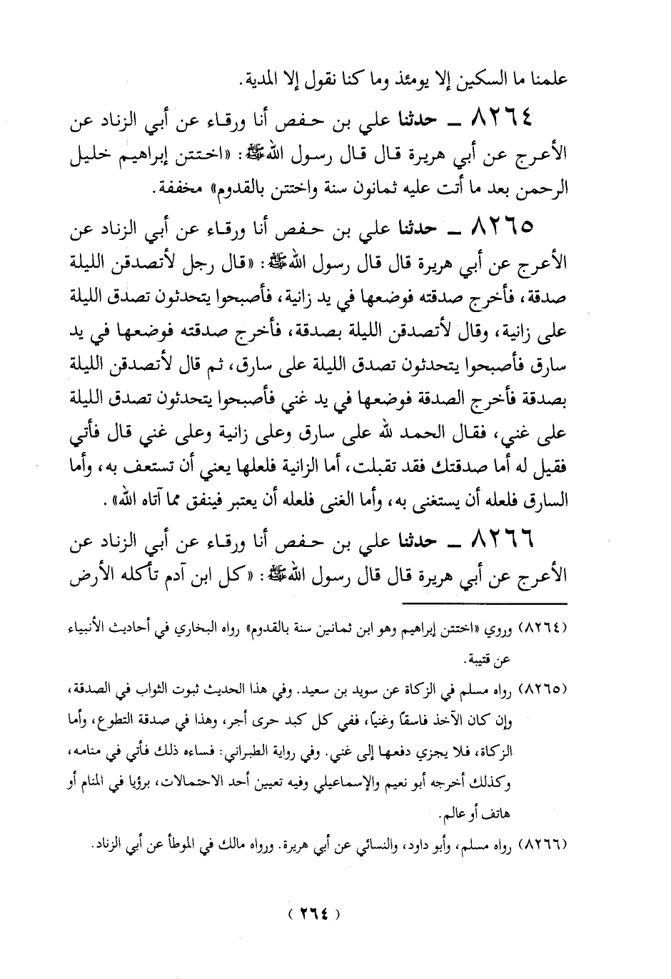 (8266) رواه مسلم، وأبو داود، والنسائي عن أبي هريرة. ورواه مالك في الموطأ عن أبي الزناد.