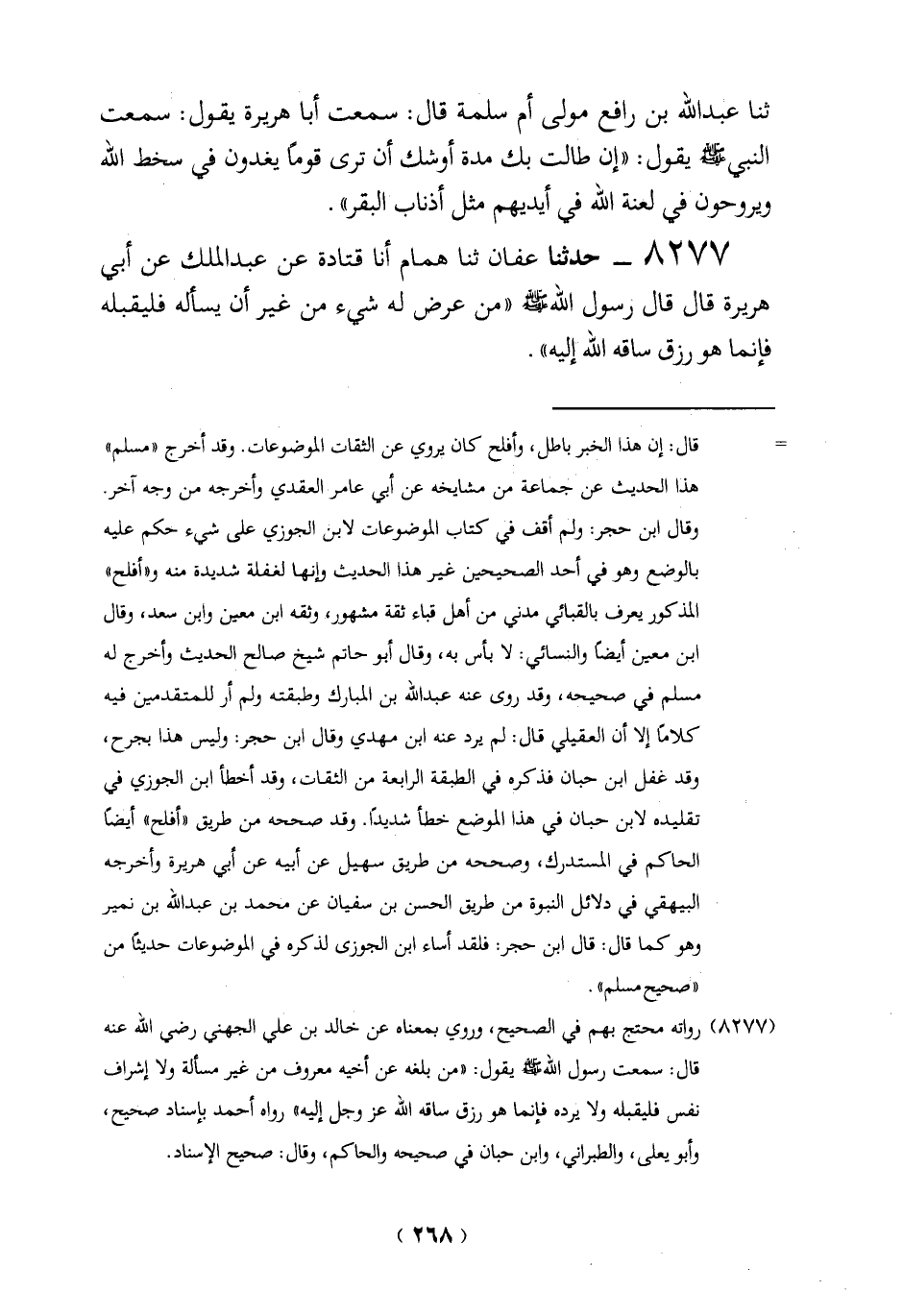 (8277) رواته محتج بهم في الصحيح، وروي بمعناه عن خالد بن علي الجهني رضي الله عنه قال: سمعت رسول الله - صلى الله عليه وسلم - يقول: "من بلغه عن أخيه معروف من غير مسألة ولا إشراف نفس فليقبله ولا يرده فإنما هو رزق ساقه الله عَزَّ وَجَلَّ إليه" رواه أحمد بإسناد صحيح،