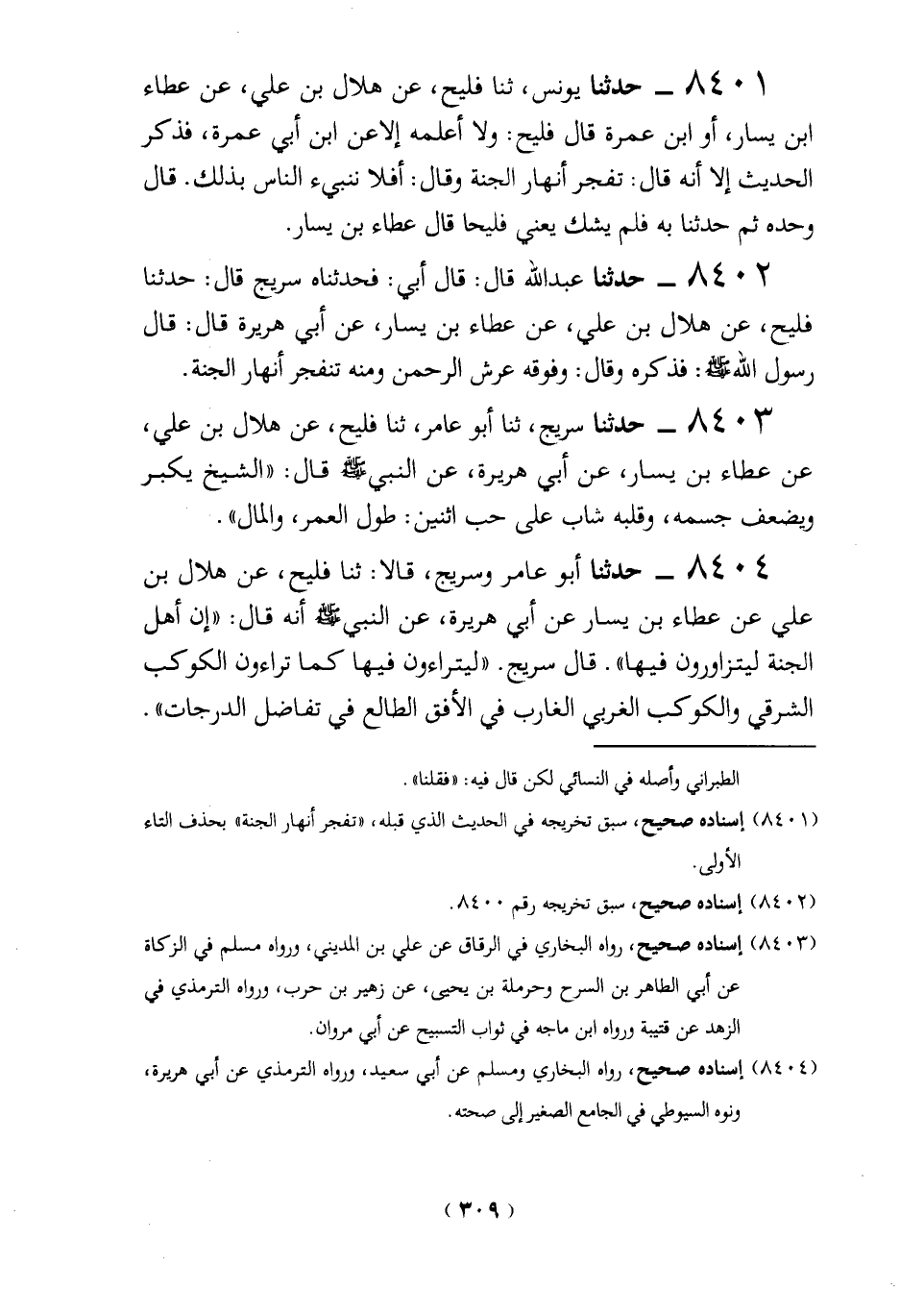 (8401) إسناده صحيح، سبق تخريجه في الحديث الذي قبله، "تفجر أنهار الجنة" بحذف التاء الأولى.