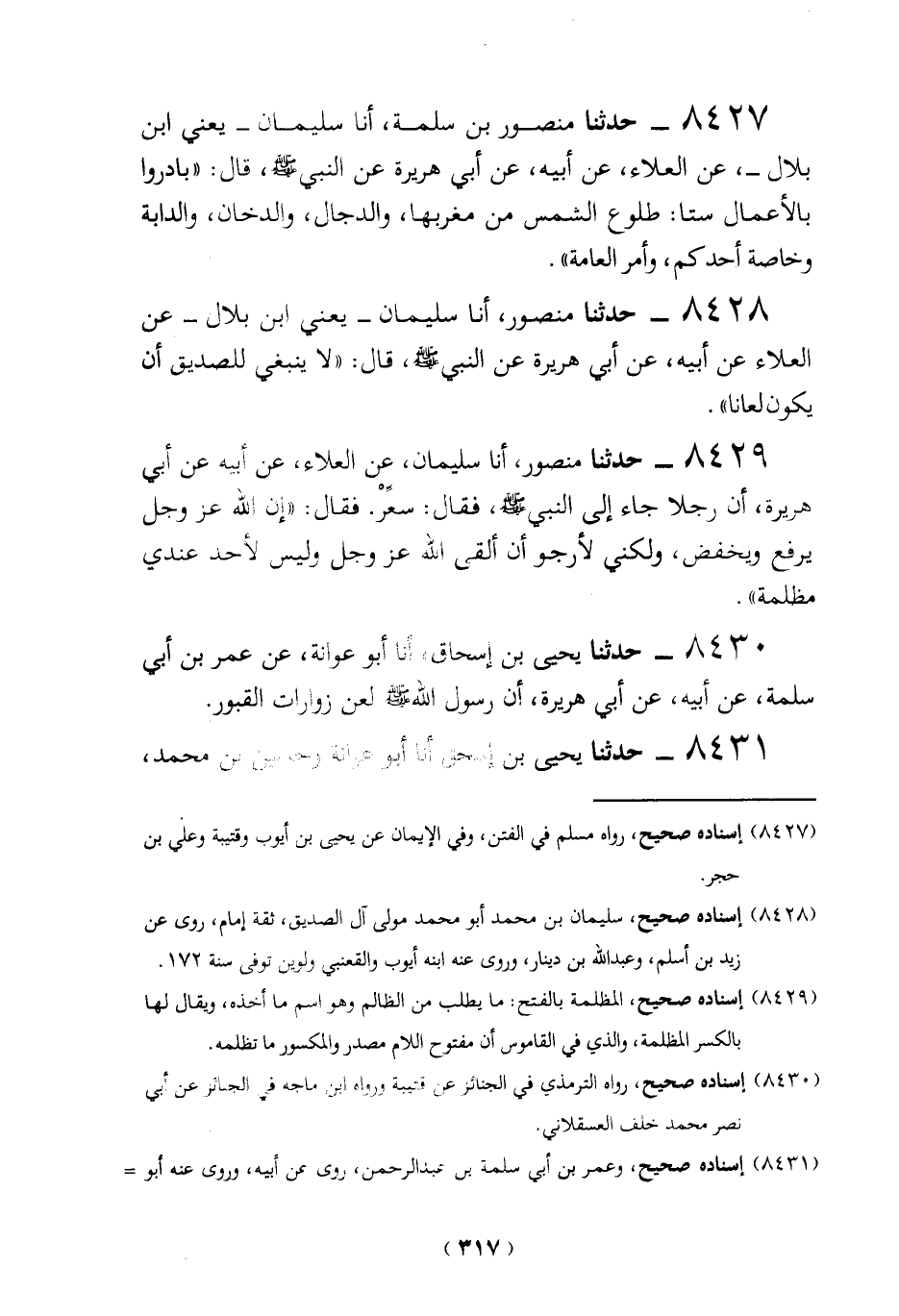 (8430) إسناده صحيح، رواه الترمذي في الجنائز عن قتيبة ورواه ابن ماجة في الجنائز عن أبي نصر محمَّد خدف العسقلاني.