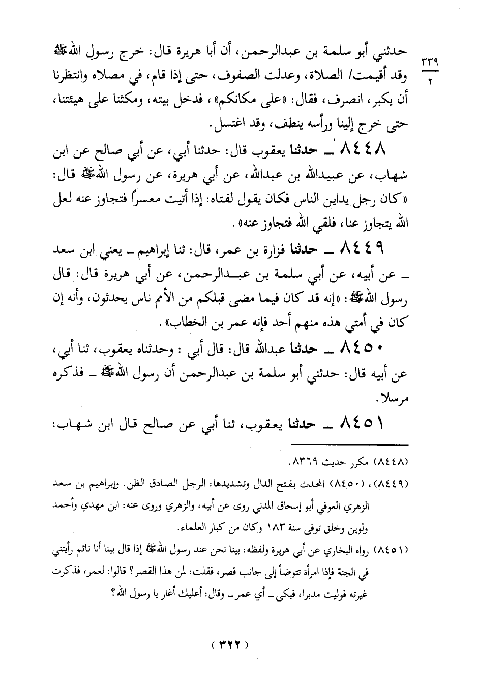 (8449)، (8450) المحدث بفتح الدال وتشديدها: الرجل الصادق الظن. وإبراهيم بن سعد الزهري العوفي أبو إسحق الدنس روى عن أبيه، والزهري وروى عنه: ابن مهدي وأحمد ولوين وخلق توفي سنة 183 وكان من كبار العلماء.