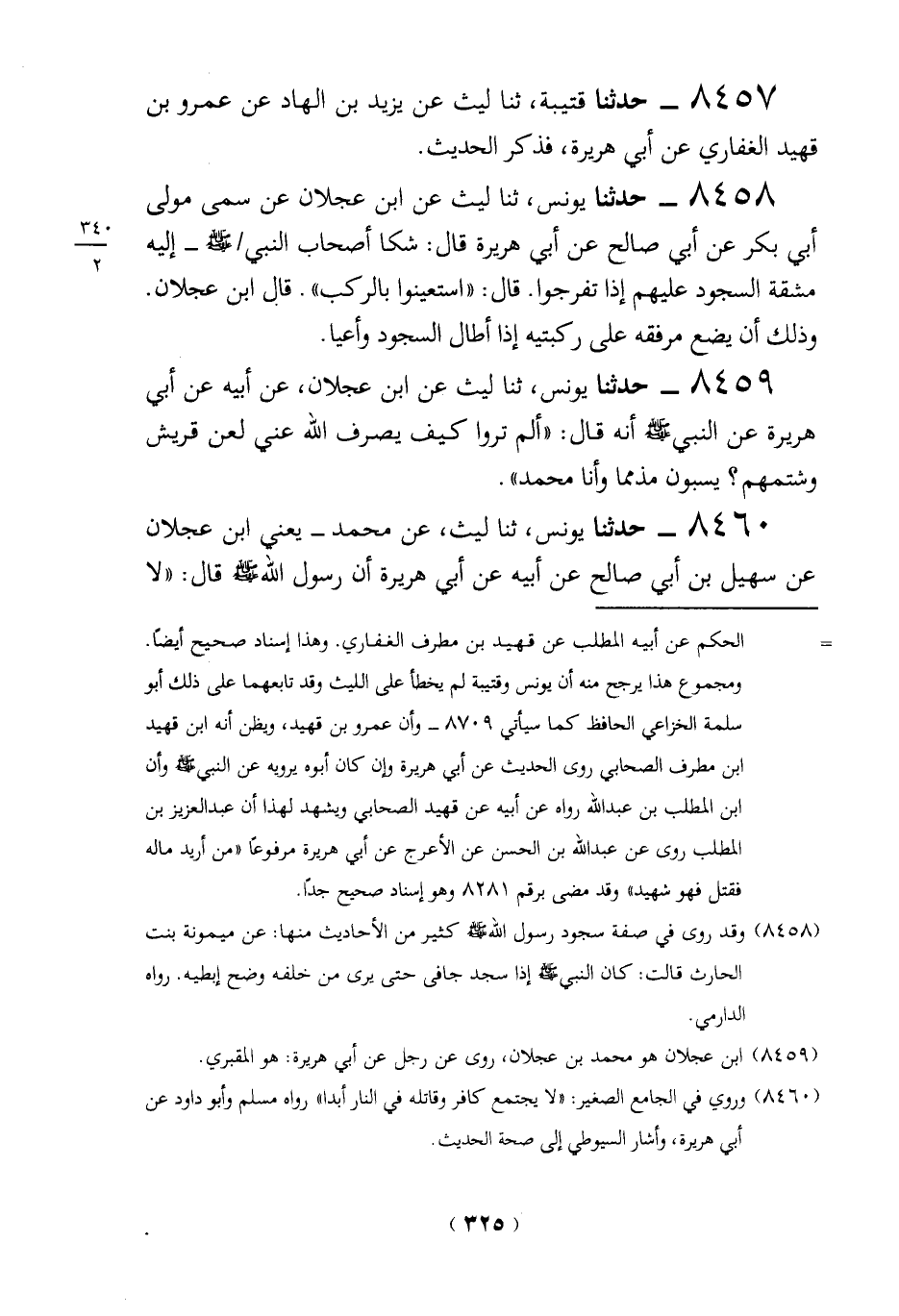 8460 - حدثنا يونس، ثنا ليث، عن محمَّد -يعني ابن عجلان عن سهيل بن أبي صالح عن أبيه عن أبي هريرة أن رسول الله قال: "لا