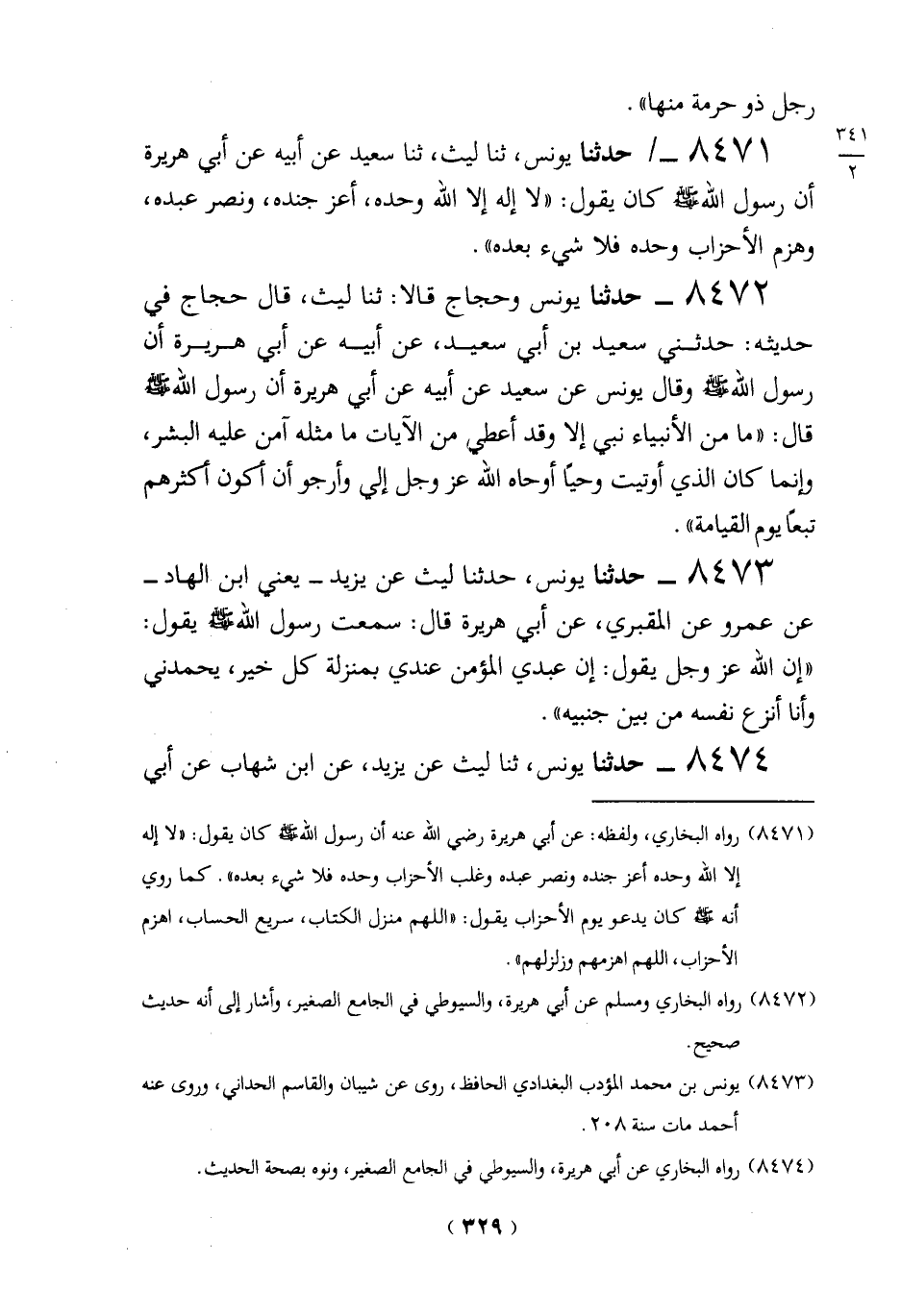 (8472) رواه البخاري ومسلم عن أبي هريرة، والسيوطي في الجامع الصغير" وأشار إلى أنه حديث صحيح.