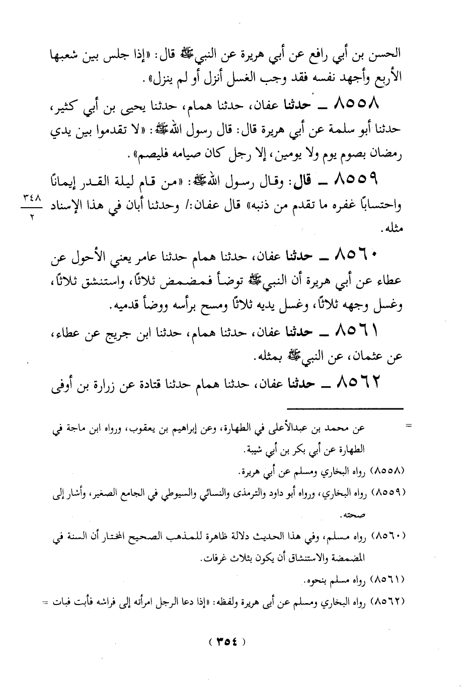 8558 - "حدثنا عفان، حدثنا همام، حدثنا يحيى بن أبي كثير، حدثنا أبو سلمة عن أبي هريرة قال: قال رسول الله -صلي الله عليه وسلم -: "لا تقدموا بين يدي رمضان بصوم يوم ولا يومين، إلارجل كان صيامه فليصم".
