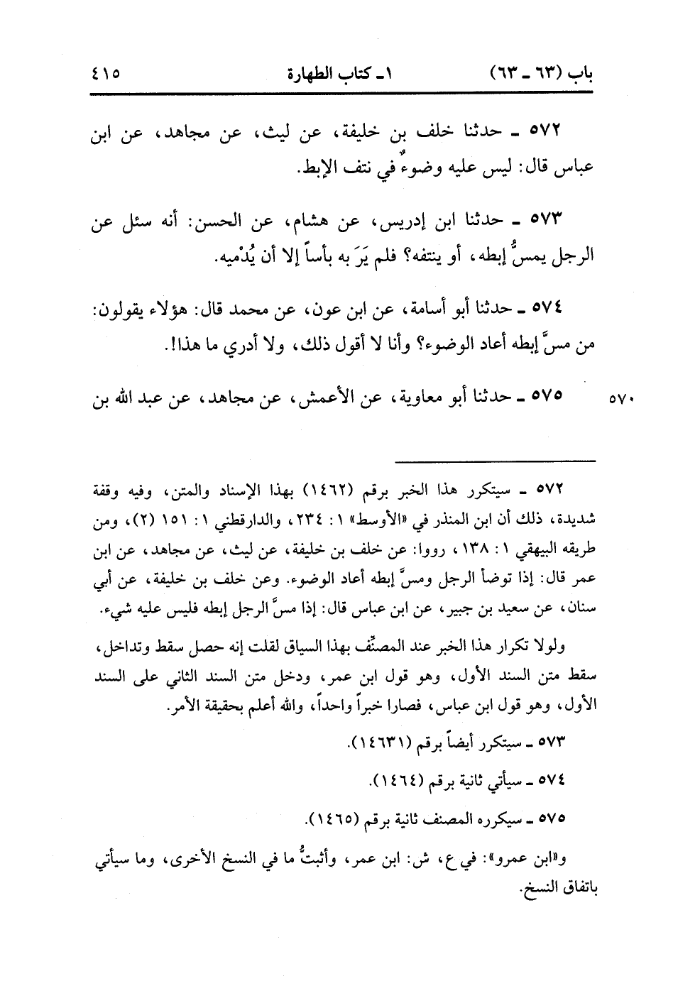 575- حَدَّثَنَا أَبُو مُعَاوِيَةَ ، عَنِ الأَعْمَشِ ، عَنْ مُجَاهِدٍ ، عَنْ عَبْدِ اللهِ بْنِ عَمْرٍو ؛ أَنَّهُ كَانَ يَغْتَسِلُ مِنْ نَتْفِ الإبِطِ. (1/52).