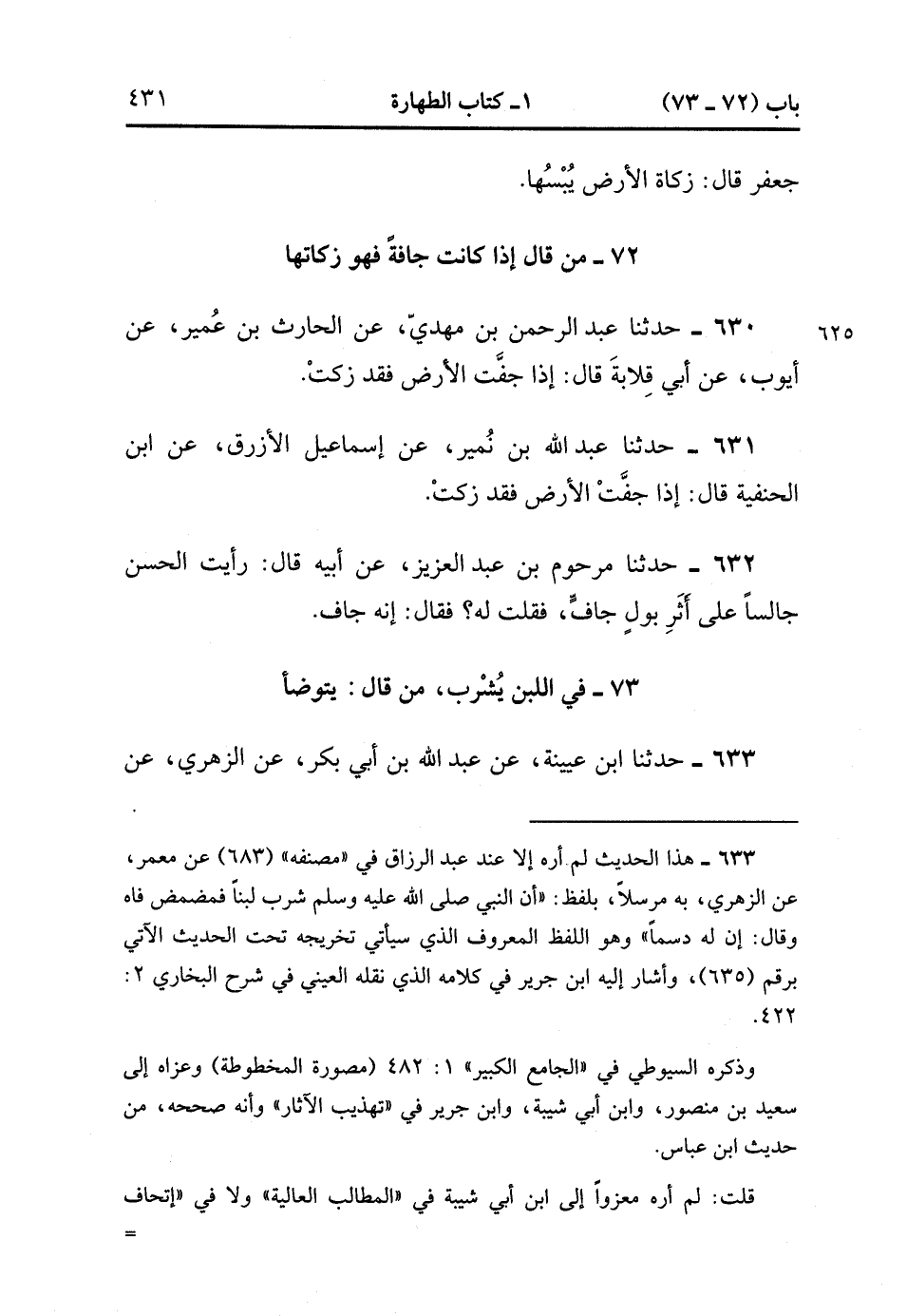 630- حَدَّثَنَا عَبْدُ الرَّحْمَنِ بْنُ مَهْدِيٍّ ، عَنِ الْحَارِثِ بْنِ عُمَيْرٍ ، عَنْ أَيُّوبَ ، عَنْ أَبِي قِلاَبَةَ ، قَالَ : إذَا جَفَّتِ الأَرْضُ فَقَدْ زَكَتْ.