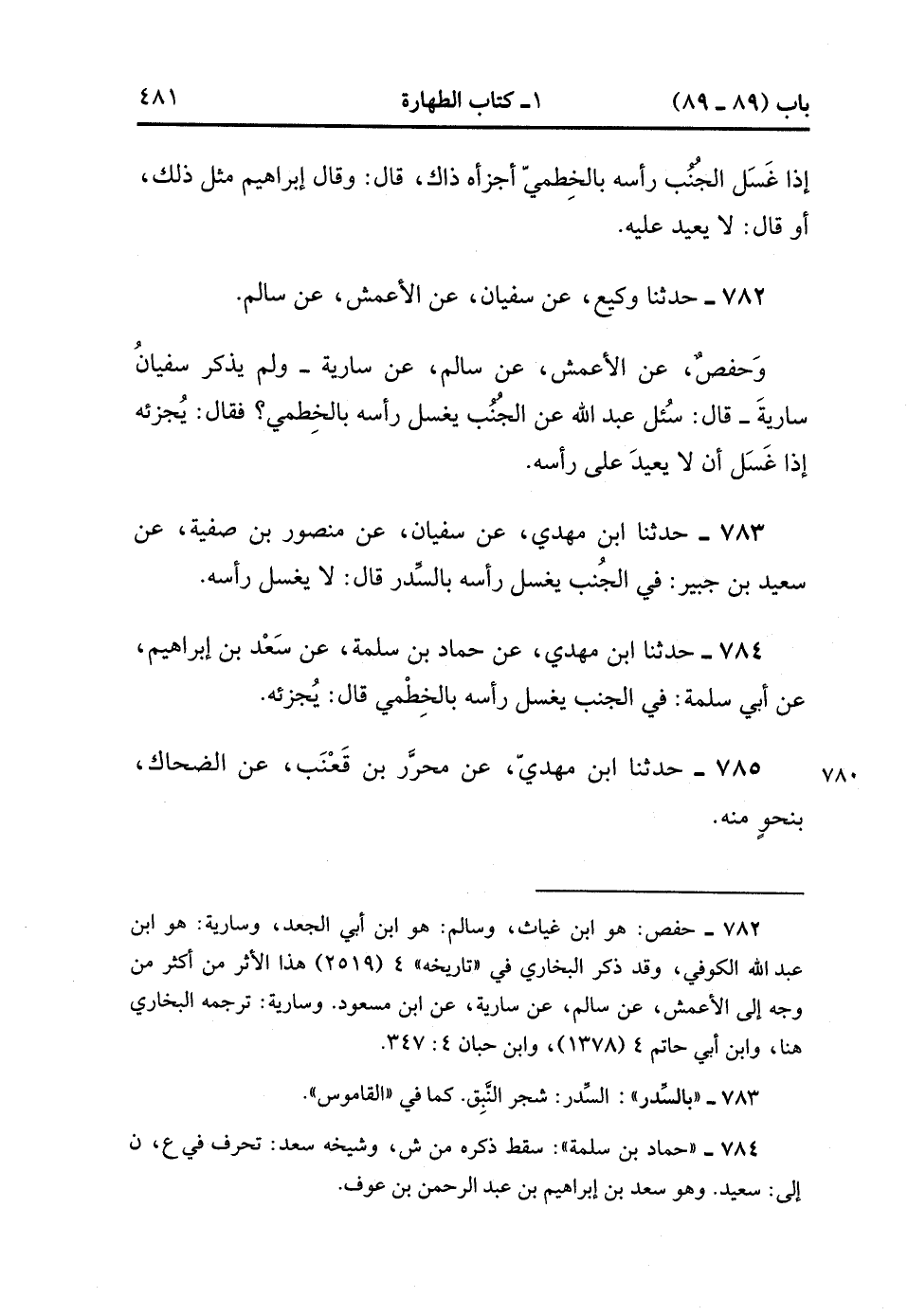789- حَدَّثَنَا حَفْصٌ ، عَنِ الْعَلاَءِ بْنِ الْمُسَيَّبِ ، عَنْ حَمَّادٍ ، عَنْ إبْرَاهِيمَ ، عَنِ ابْنِ عَبَّاسٍ ؛ فِي الرَّجُلِ يَغْتَسِلُ مِنَ الْجَنَابَةِ ، فَيَنْتَضِحُ فِي إنَائِهِ مِنْ غُسْلِهِ ، فَقَالَ : لا بَأْسَ بِهِ.