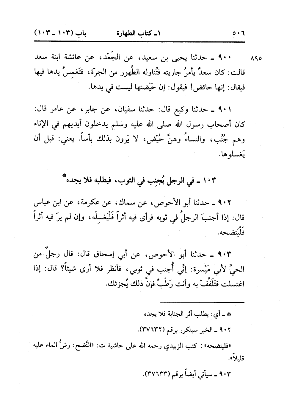 901- حَدَّثَنَا وَكِيعٌ , قَالَ : حدَّثَنَا سُفْيَانُ ، عَنْ جَابِرٍ ، عَنْ عَامِرٍ قَالَ : كَانَ أَصْحَابُ رَسُولِ اللهِ صَلَّى الله عَلَيْهِ وَسَلَّمَ يُدْخِلُونَ أَيْدِيَهُمْ فِي الإِنَاءِ وَهُمْ جُنُبٌ ، وَالنِّسَاءُ وَهُنَّ حُيَّضٌ ، لا يَرَوْنَ بِذَلِكَ بَأْسًا ، يَعْنِي : قَبْلَ أَنْ يَغْسِلُوهَا.