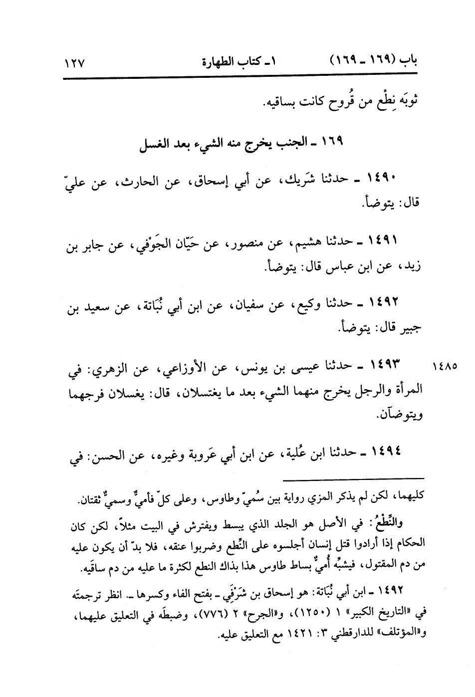 1491- حَدَّثَنَا هُشَيْمٌ ، عَنْ مَنْصُورٍ ، عَنْ حَيَّانَ الْجَوْفِي ، عَنْ جَابِرِ بْنِ زَيْدٍ ، عَنِ ابْنِ عَبَّاسٍ ، قَالَ : يَتَوَضَّأُ.