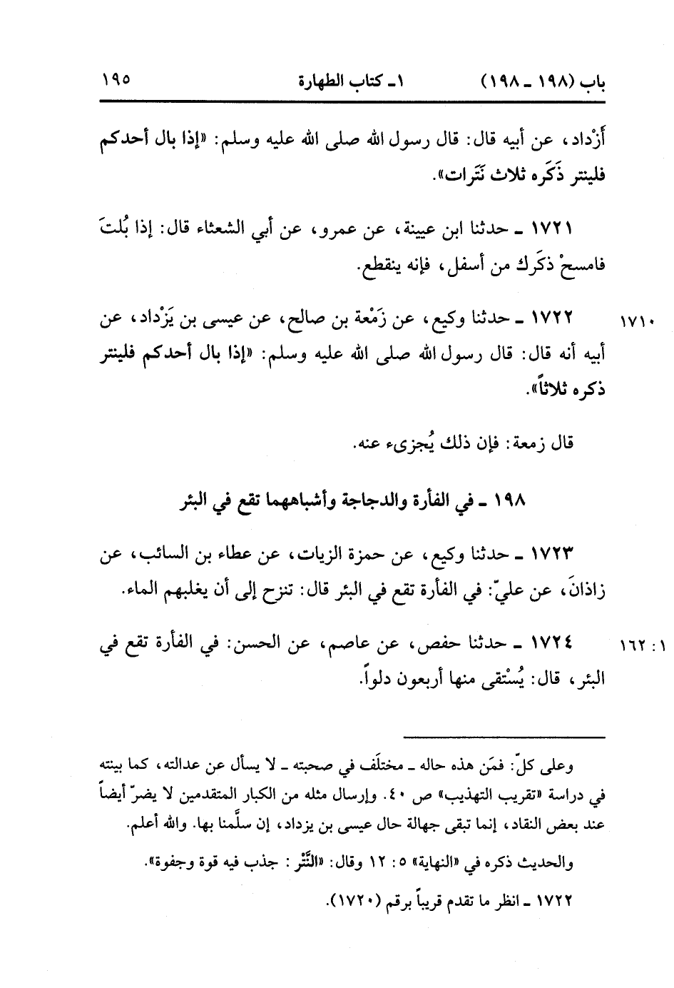 198- في الفأرة وَالدَّجَاجَةِ وَأَشْبَاهِهِمَا تَقَعُ فِي الْبِئْرِ.