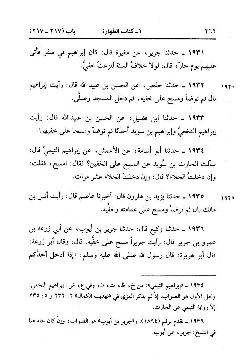 1936- حَدَّثَنَا وَكِيعٌ ، قَالَ : حَدَّثَنَا جَرِيرُ بْنُ أَيُّوبَ ، عَنْ أَبِي زُرْعَةَ بْنَ عَمْرو بْنِ جَرِيرٍ ، قَالَ : رَأَيْتُ جَرِيرًا مَسَحَ عَلَى خُفَّيْهِ.