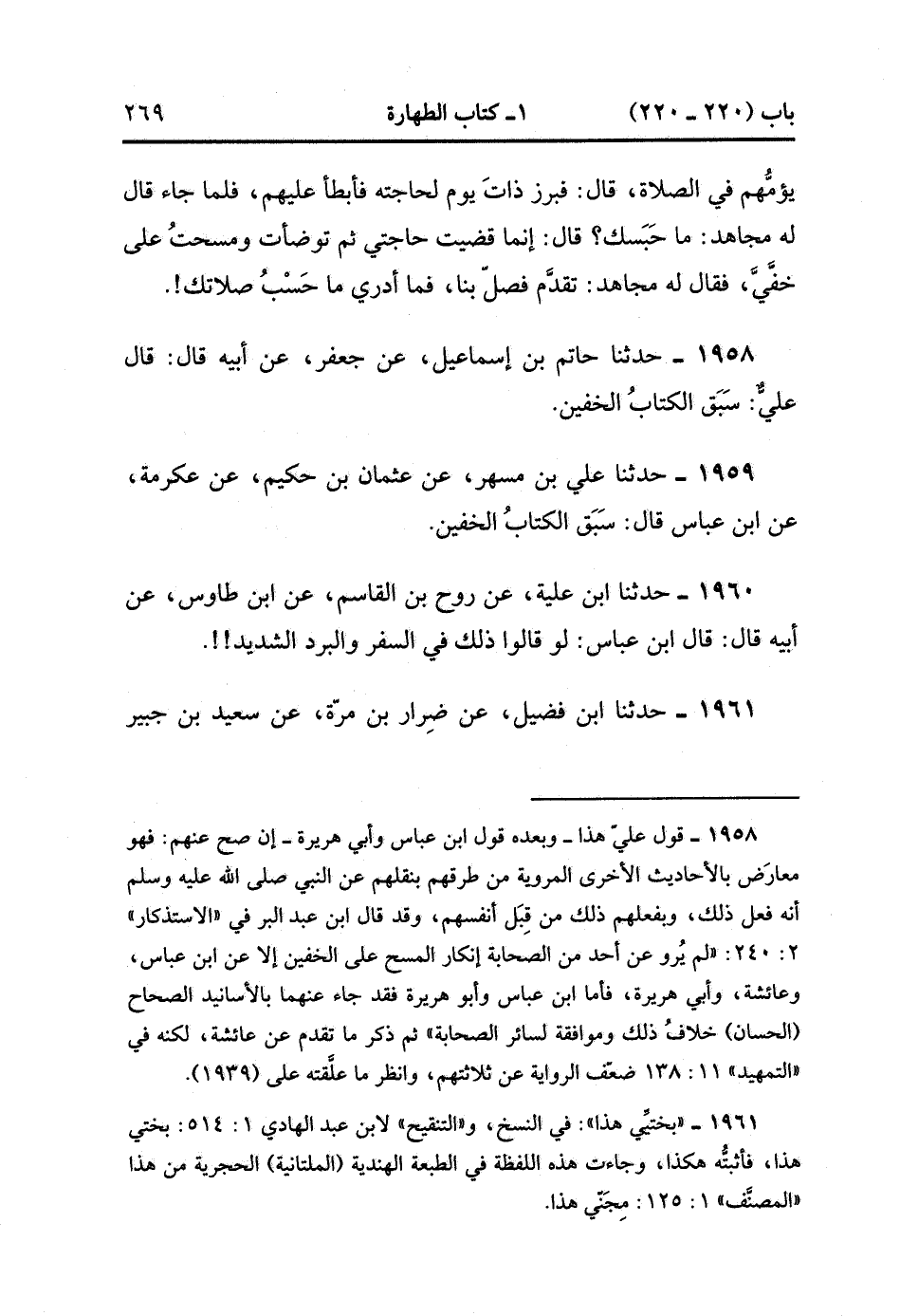 1959- حَدَّثَنَا عَليُّ بْنُ مُسْهِرٍ ، عَنْ عُثْمَانَ بْنِ حَكِيمٍ ، عَنْ عِكْرِمَةَ ، عَنِ ابْنِ عَبَّاسٍ ، قَالَ : سَبَقَ الْكِتَابُ الْخُفَّيْنِ.