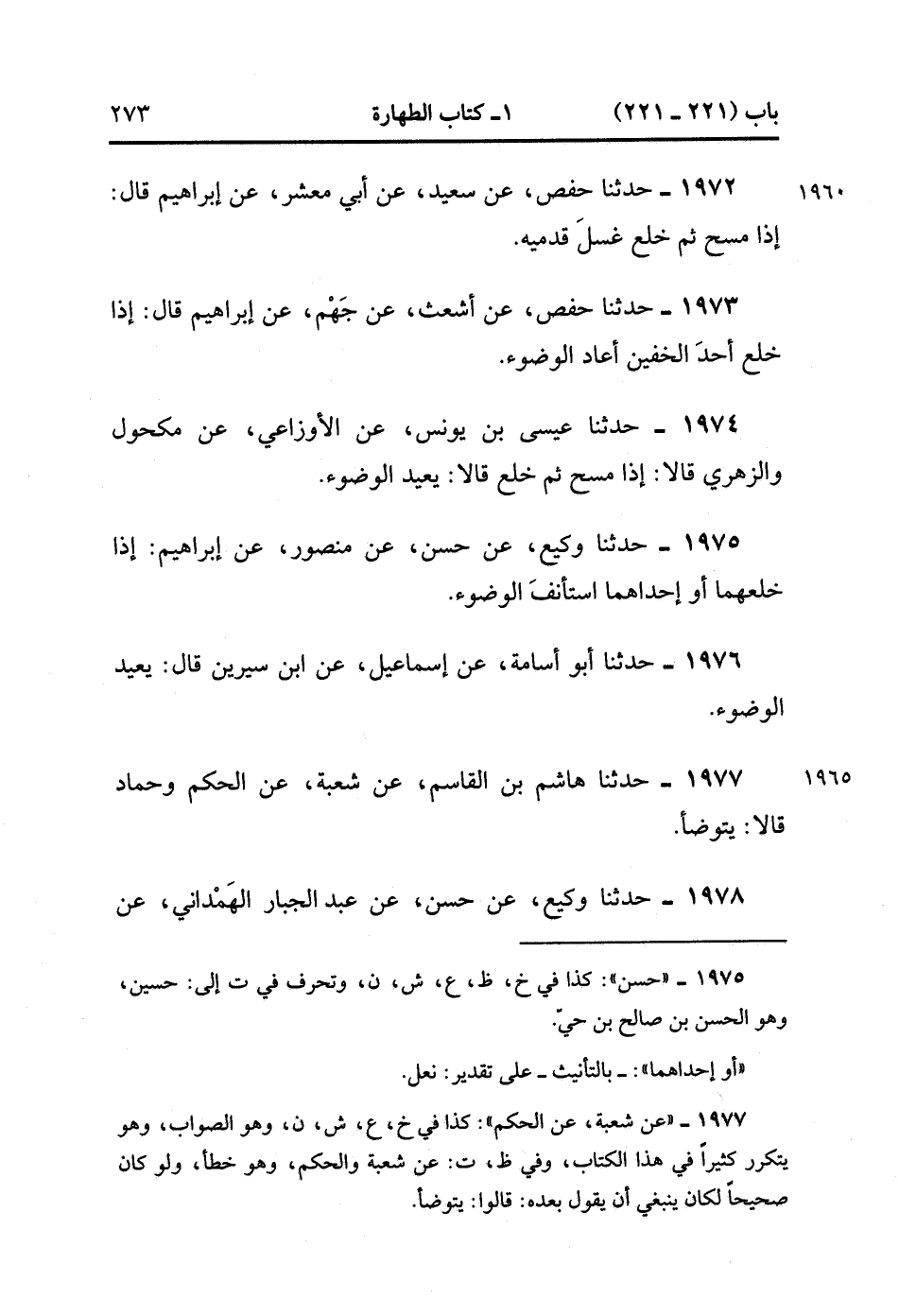 1978- حَدَّثَنَا وَكِيعٌ ، عَنْ حَسَنٍ ، عَنْ عَبْدِ الْجَبَّارِ الْهَمْدَانِيِّ ، عَنِ الشَّعْبِيِّ ، قَالَ : إِذَا خُلِعَ الْخُفُّ خُلِعَ الْمَسْحُ. (1/187).