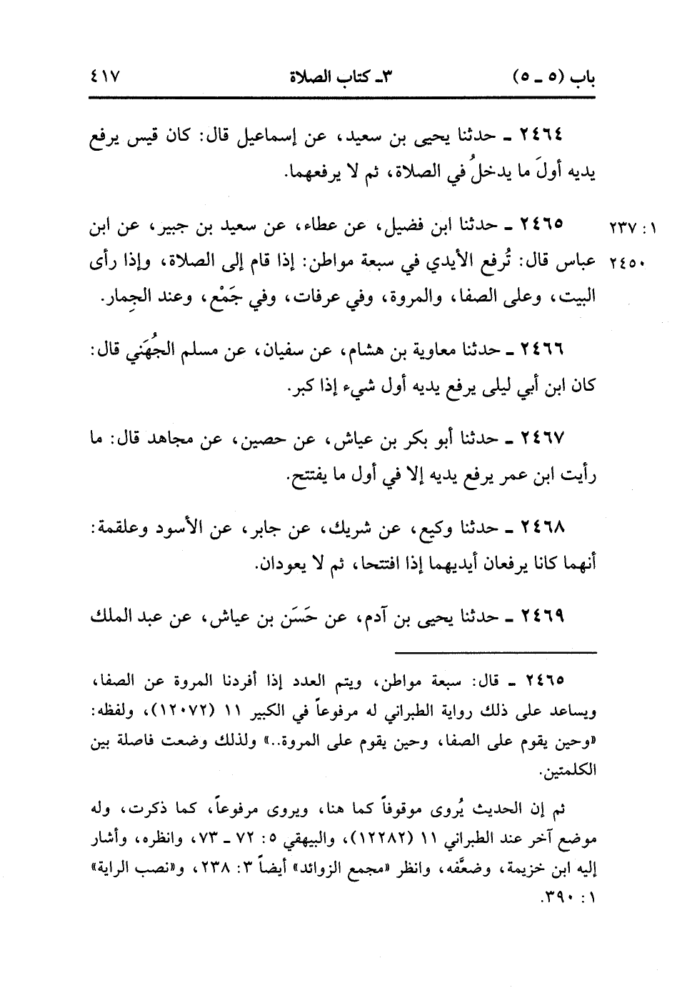 2465- حَدَّثَنَا ابْنُ فُضَيْلٍ ، عَنْ عَطَاءٍ ، عَنْ سَعِيدِ بْنِ جُبَيْرٍ ، عَنِ ابْنِ عَبَّاسٍ ، قَالَ : تُرْفَعُ الأَيْدِي فِي سَبْعَةِ مَوَاطِنَ : إذَا قَامَ إلَى الصَّلاَةِ ، وَإِذَا رَأَى الْبَيْتَ ، وَعَلَى الصَّفَا وَالْمَرْوَةِ ، وَفِي عَرَفَاتٍ ، وَفِي جَمْعٍ ، وَعِنْدَ الْجِمَارِ. (1/236)