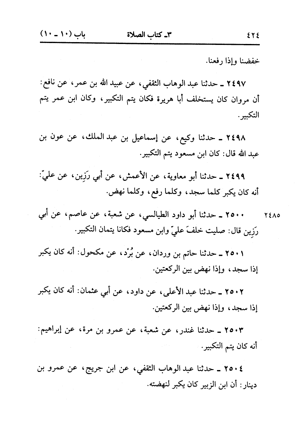 2504- حَدَّثَنَا عَبْدُ الْوَهَّابِ الثَّقَفِيُّ ، عَنِ ابْنِ جُرَيْجٍ ، عَنْ عَمْرو بْنِ دِينَارٍ : أَنَّ ابْنَ الزُّبَيْرِ كَانَ يُكَبِّرُ لِنَهْضَتِهِ. (1/240).