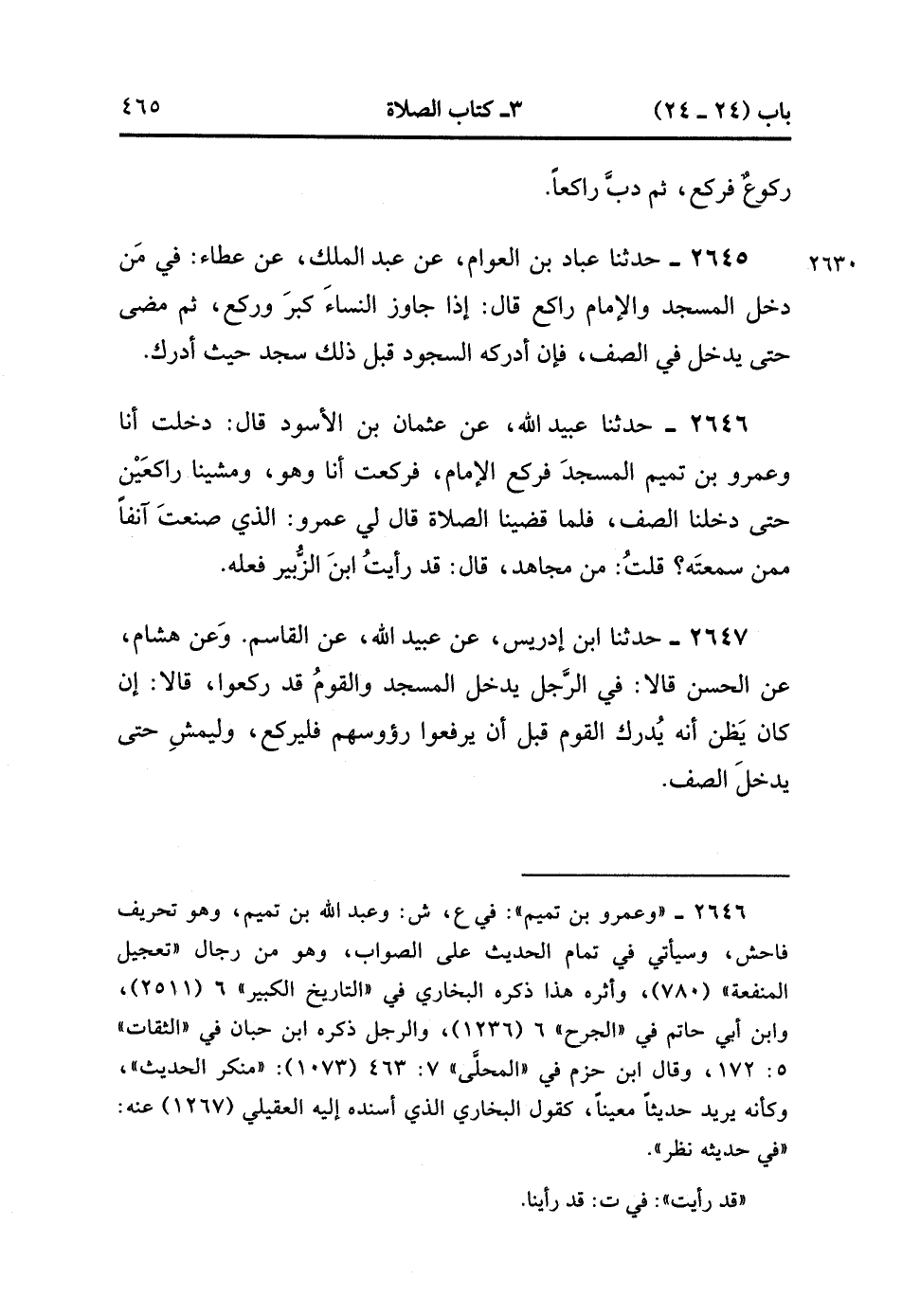 2646- حَدَّثَنَا عُبَيْدُ اللهِ ، عَنْ عُثْمَانَ بْنِ الأَسْوَدِ ، قَالَ : دَخَلْت أَنَا وَعَمْرِو بْنُ تَمِيمٍ الْمَسْجِدَ فَرَكَعَ الإِمَامُ ، فَرَكَعْتُ أَنَا وَهُوَ ، وَمَشَيْنَا رَاكِعَيْنِ حَتَّى دَخَلْنَا الصَّفَّ ، فَلَمَّا قضينا الصلاة ، قَالَ لِي عُمَرٌو : الَّذِي صَنَعْت آنِفًا مِمَّنْ سَمِعْته ؟ قُلْتُ : مِنْ مُجَاهِدٍ ، قَالَ : قَدْ رَأَيْت ابْنَ الزُّبَيْرِ فَعَلَهُ.