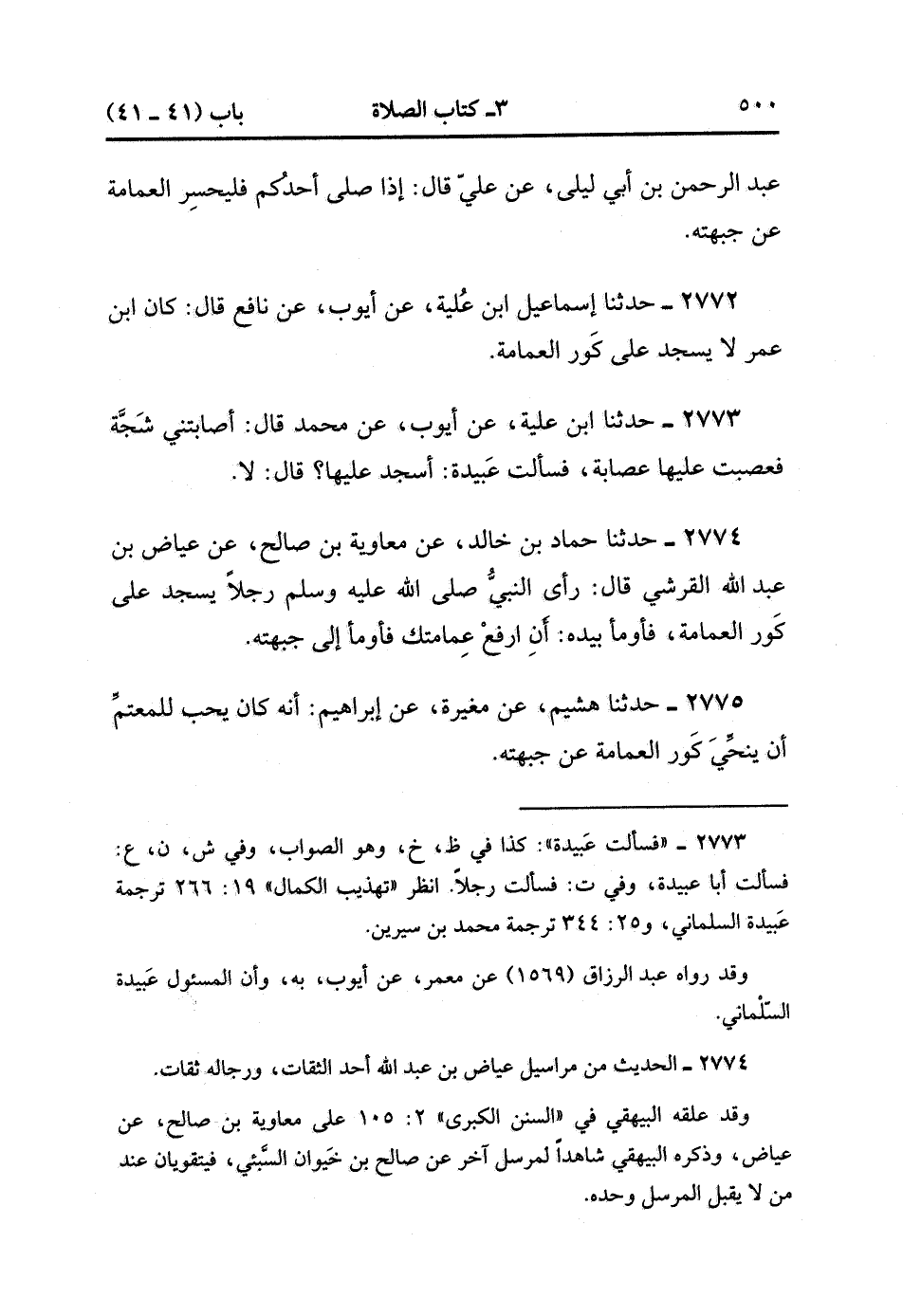 2772- حَدَّثَنَا إسْمَاعِيلُ ابْنُ عُلَيَّةَ ، عَنْ أَيُّوبَ ، عَنْ نَافِعٍ ، قَالَ : كَانَ ابْنُ عُمَرَ لا يَسْجُدُ عَلَى كَوْرِ الْعِمَامَةِ.