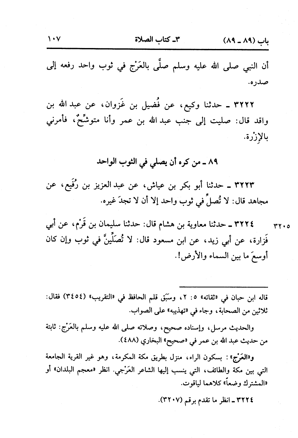 3223- حَدَّثَنَا أَبُو بَكْرِ بْنُ عَيَّاشٍ ، عَنْ عَبْدِ الْعَزِيزِ بْنِ رُفَيْعٍ ، عَنْ مُجَاهِدٍ ، قَالَ : لا تُصَلِّ فِي ثَوْبٍ وَاحِدٍ إِلاَّ أَنْ لا تَجِدَ غَيْرَهُ.