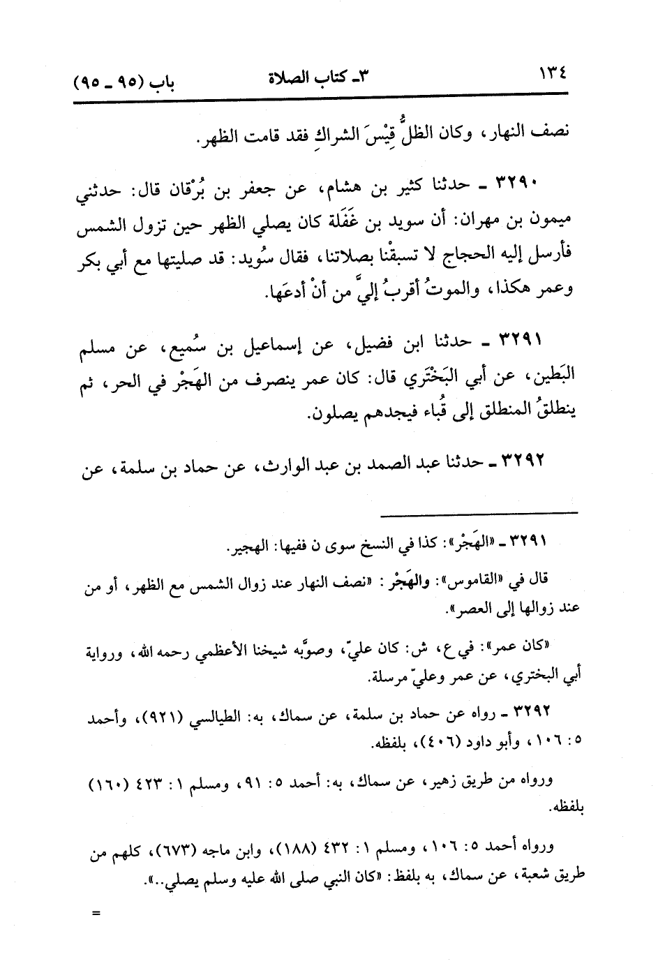 3290- حَدَّثَنَا كَثِيرُ بْنُ هِشَامٍ ، عَنْ جَعْفَرِ بْنِ بُرْقَانَ ، قَالَ : حدَّثَنِي مَيْمُونُ بْنُ مِهْرَانَ : أَنَّ سُوَيْد بْنَ غَفَلَةَ كَانَ يُصَلِّي الظُّهْرَ حِينَ تَزُولُ الشَّمْسُ فَأَرْسَلَ إلَيْهِ الْحَجَّاجُ لا تَسْبِقْنَا بِصَلاَتِنَا ، فَقَالَ سُوَيْد : قَدْ صَلَّيْتهَا مَعَ أَبِي بَكْرٍ وَعُمَرَ هَكَذَا ، وَالْمَوْتُ أَقْرَبُ إلَيَّ مِنْ أَنْ أَدَعَهَا.
