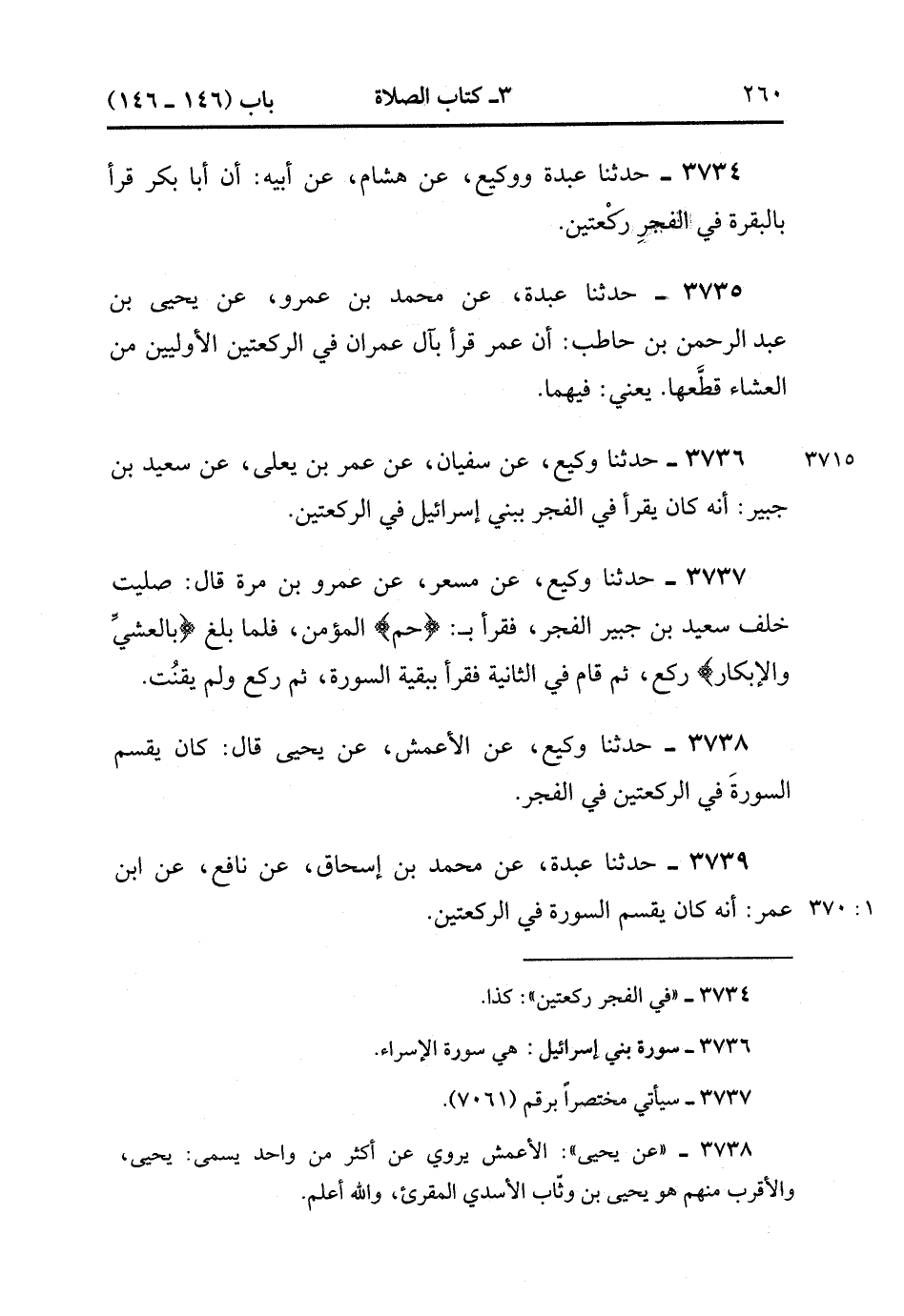 3736- حَدَّثَنَا وَكِيعٌ ، عَنْ سُفْيَانَ ، عَنْ عُمَرَ بْنِ يَعْلَى ، عَنْ سَعِيدِ بْنِ جُبَيْرٍ : أَنَّهُ كَانَ يَقْرَأُ فِي الْفَجْرِ بِبَنِي إسْرَائِيلَ فِي الرَّكْعَتَيْنِ.