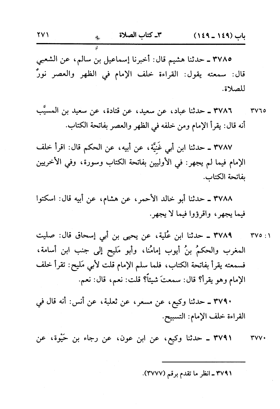 3785- حَدَّثَنَا هُشَيْمٌ ، قَالَ : أَخْبَرَنَا إسْمَاعِيلُ بْنُ سَالِمٍ ، عَنِ الشَّعْبِيِّ ، قَالَ : سَمِعْتُهُ يَقُولُ : الْقِرَاءَةُ خَلْفَ الإِمَامِ فِي الظُّهْرِ وَالْعَصْرِ نُورٌ لِلصَّلاَةِ.